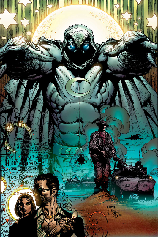 "To The Bone": One night on windswept rooftop, Moon Knight squared off against his greatest nemesis -- Bushman -- and something truly dreadful happened. Something Spector can't put behind him, nor should. Something Khonshu won't let him. You see, someone's about to pick a fight with Marc Spector. The night is young and there's a bad moon rising. Brace yourself for the modt brutal battle you've ever seen! Part 3 (of 6).