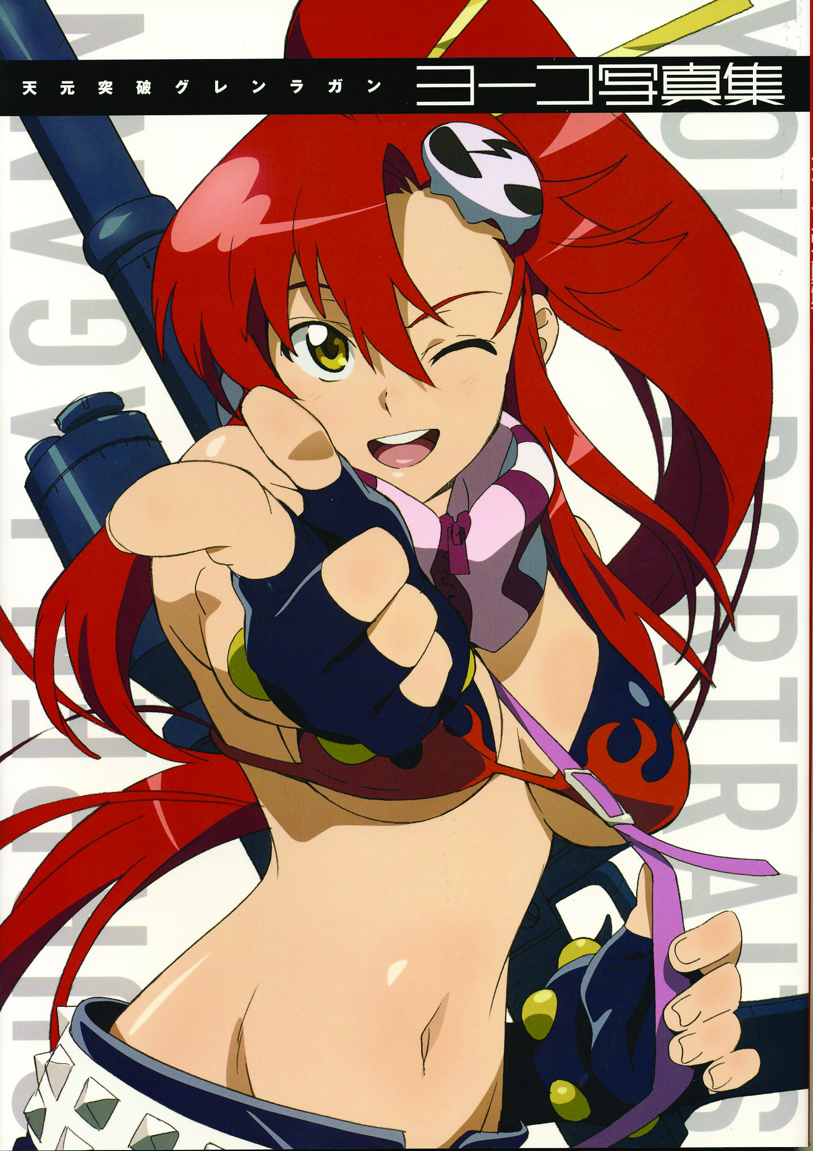 Tengen Toppa Gurren Lagann anime, Yoko Ritona is a fierce redhead whose weapon of choice is a rifle that's as tall as she is! This artbook captures Yoko in a variety of poses, some with her trademark weaponry, some without! Japanese text.