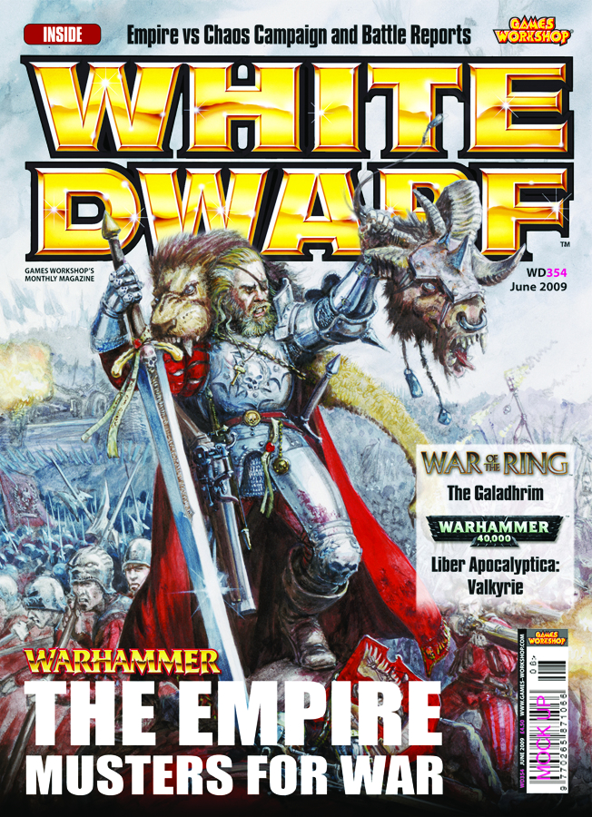 War of The Ring releases including Gladhrim Knights, Galadhrim Warriors, Galadhrim Guard, and two Elf characters. Also featured is a battle report detailing the Empire marching north towards Chaos, an article on converting using the new plastic Empire sprues, plus