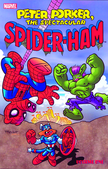 It's 1983, and Star Comics - the branch of Marvel aimed at kids - is launching its most popular title: Peter Porker, the Spectacular Spider-Ham! When average pig Peter Porker gets the powers of a spider, he must balance his super-hero life with his job at the Daily Beagle - or J. Jonah Jackal will have his hide! Featuring such threats as Ducktor Doom and his Kangaroo Court, Captain Reno, Nagneto the Magnetic Horse, the Buzzard and the Bullfrog, and the Breaded Boremamuu! And guest-starring Captain Americat, the Incredible Hulk-Bunny, the Fantastic Fur, Goose Rider, Croctor Strange, Iron Mouse and more! Collecting MARVEL TAILS STARRING PETER PORKER, THE SPECTACULAR SPIDER-HAM #1 and PETER PORKER, THE SPECTACULAR SPIDER-HAM #1-5.