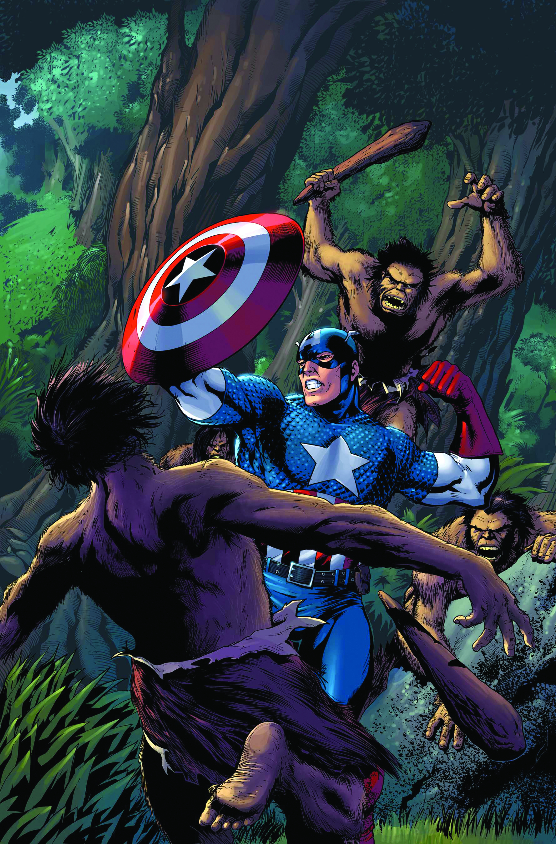 Spotlighting Marvel's next movie star: Captain America! When the Super-Soldier investigates a stolen shipment of plutonium, did he ever think it would lead to battling against hordes of genetically re-created species and cavemen? The shield-slinging living legend is now in the fight for his life, and he may be the next one to go...extinct!