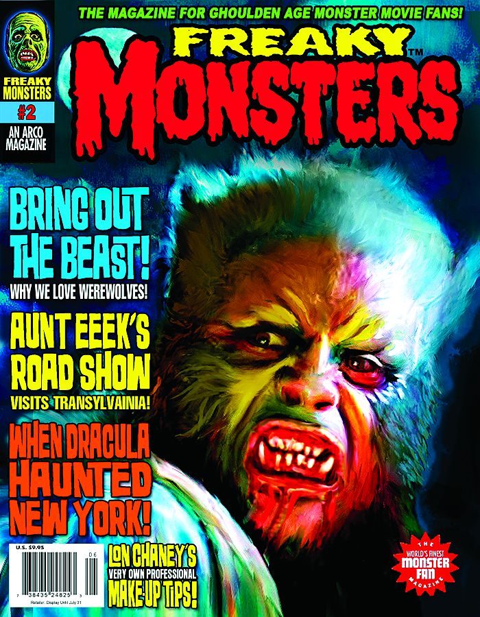 Freaky Monsters recaptures the spirit and fun of the original monster-madness boom of the1960s Each issue features a wide selection of rare vintage stills from classic horror films with entertaining and informative articles, reviews and commentary. This issue features "The Werewolf & the Movies: What Makes Him Horrorwood's Second Class Citizen?," Lon Chaney's make-up secrets, "When Dracula Haunted New York," ultra rare photos, and a pull-out poster!
