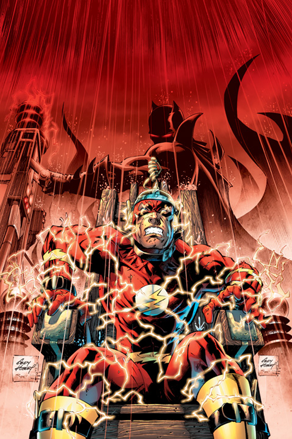 The world-changing miniseries continues! Where are the World's Greatest Super Heroes? Barry Allen is on a mission to find out or die trying - and that may be what's happening as he tries to make lightning strike twice! Meanwhile, around the submerged Paris, the pirate Deathstroke confronts Emperor Aquaman!
