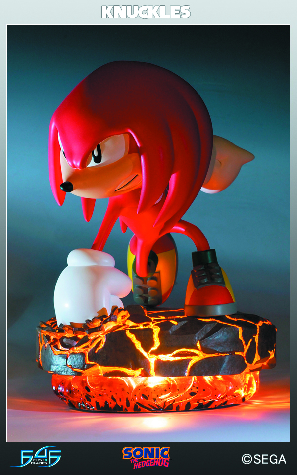 Sonic the Hedgehog games, he is pounding his fist into a rocky base that is submerged in lava that can be found in the Lava Reef Zone! We painstakingly added all his detailed and created an aggressive and dynamic pose that complements his personality. Limited to 1,500 pieces worldwide, Knuckles comes in deluxe full-color packaging with a hand-numbered base and includes an Authenticity Card.