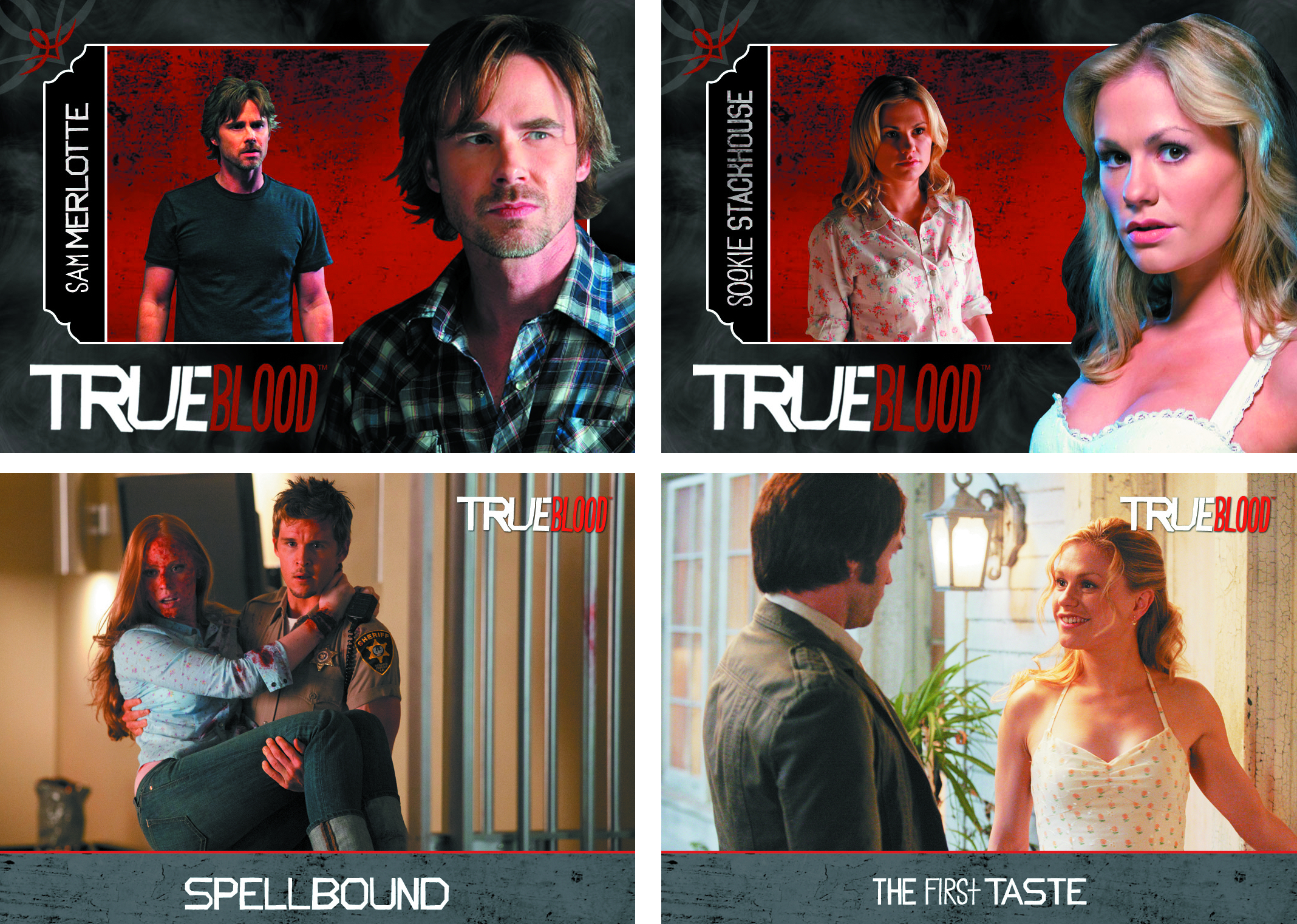 True Blood Cards (1:12 packs); 9 "Do Bad Things" Cards (1:12 packs); 6 "Black-n-Blood" Cards (1:24 packs) ; and 4