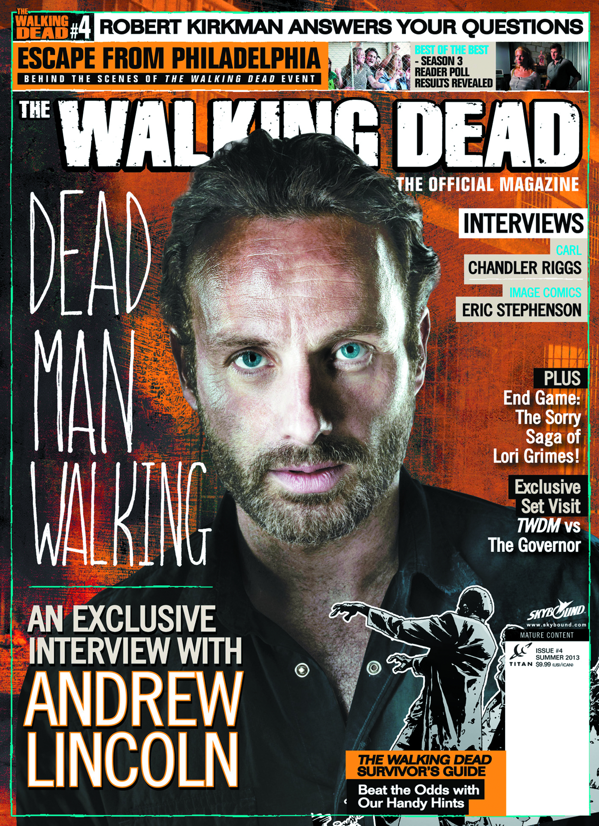 The Grimes family take center stage with exclusive interviews with Andrew Lincoln (Rick) and his onscreen son, Chandler Riggs; and we scrutinize the sorry saga of Rick's wife, Lori. Also in this issue, creator Robert Kirkman will answer readers' questions; we check in on the TV series' award-winning sound department; we reveal the results of our season three readers poll; one of our on-set reporters tries to take a bite out of The Governor (David Morrissey); and we go behind the scenes of
