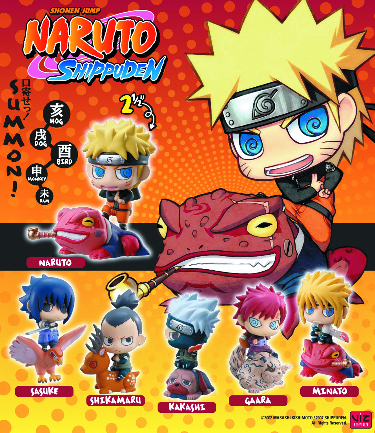 Naruto Petit Chara Land figures! These 2 1/2" tall figures of Sasuke, Shikamaru, Kakashi, Gaara, Minato, and Naruto boast an adorable chibi style! Blind mystery box packaging.