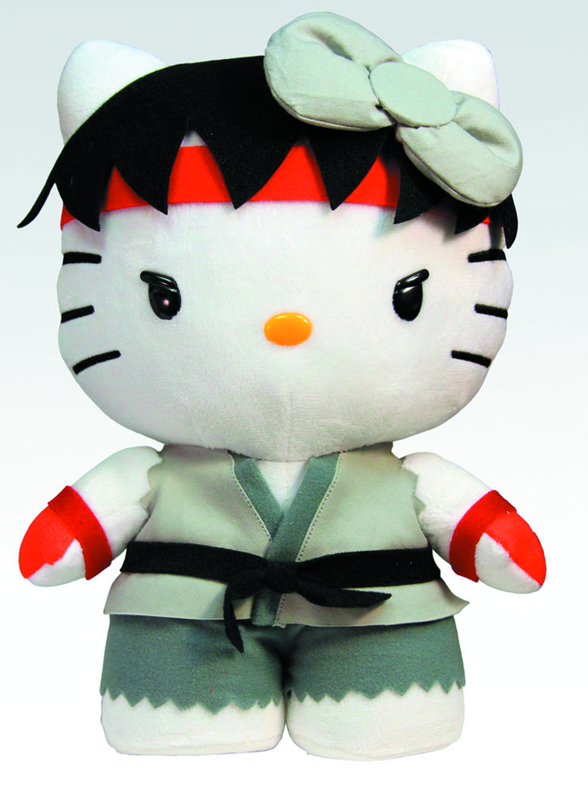 Sanrio x Street Fighter Deluxe Plush stands approximately 10" tall and is dressed in specially designed Street Fighter costumes.