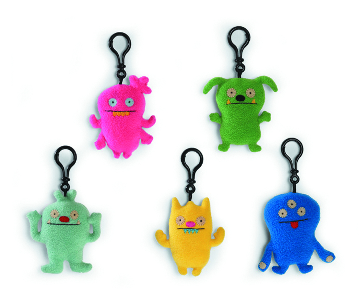 Decorate your bag or jacket with the Uglydolls thanks to the 2013 Introductory Clip-On Plushes! These plushes of Gorgeous, Cheesy, Hot Foot, Cold Feet, and Fishy are 3" tall and come with a clip-on hook.