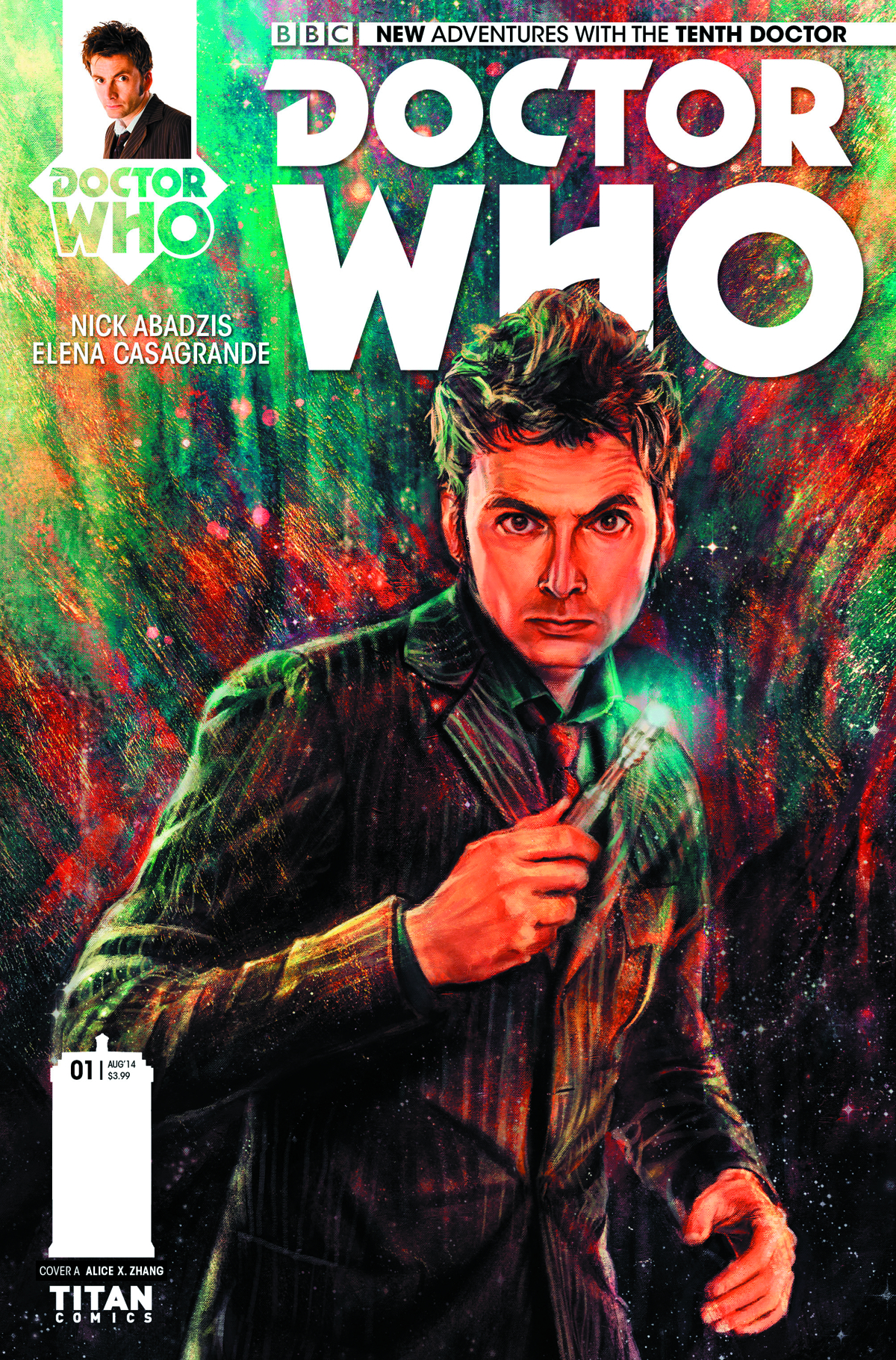 The tenth Doctor is back, in an all-new ongoing series! New companion, new foes, unforgettable new horizons! Allons-y! The Eisner Award-winning Nick Abadzis and fan favorite Elena Casagrande take control of the TARDIS for the first five-issue arc with the tenth Doctor, portrayed by David Tennant! Gabriella Gonzalez is stuck in a dead-end job in her family's New York laundrette, dreaming of college and bigger, better, and brighter things. So when a strange man with an even stranger big blue box barges into her life on the eve of the Day of the Dead celebrations, talking about an infestation of psychic aliens, she seizes her chance for adventure with both hands. After Donna's tragic exit, the Doctor thought he was done with companions. But Gabby Gonzalez is going to prove him wrong - if she survives the night!