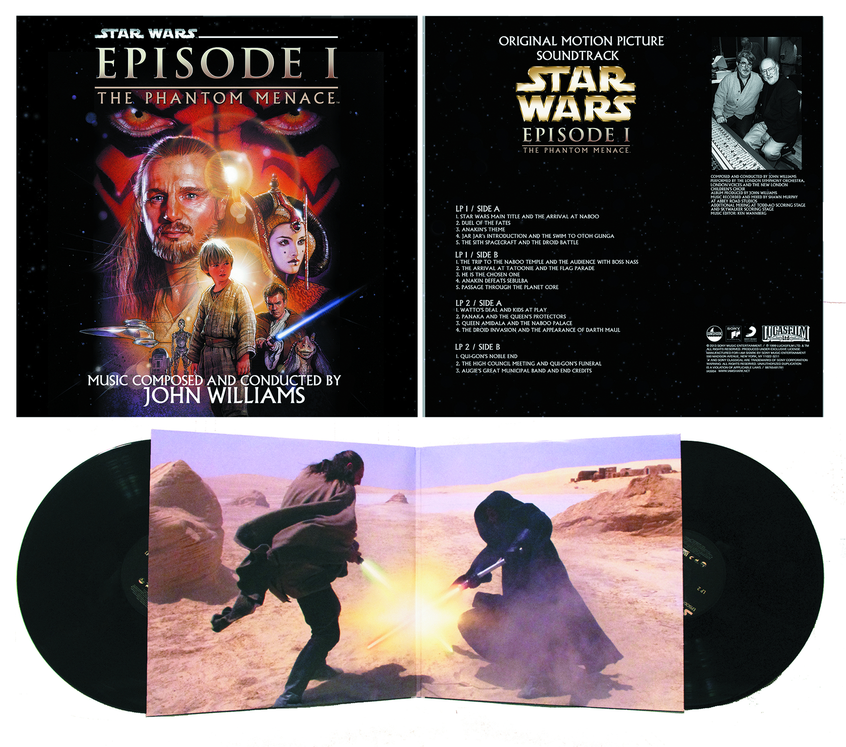 Star Wars Episode 1: The Phantom Menace, scored by legendary composer John Williams and performed by the London Symphony Orchestra! The original album was released to accompany the film (May 4, 1999). This release was certified Platinum in the U.S. and Gold in the UK, containing 17 tracks from selections of the score, meant to stand alone as a separate listening experience and not as one hears the score in the film. John Williams edited each track to present the score as one would hear it in a concert suite. Recorded in Abbey Road studios over a week, starting on February 10, 1999 performed by the London Voices and London Symphony Orchestra,