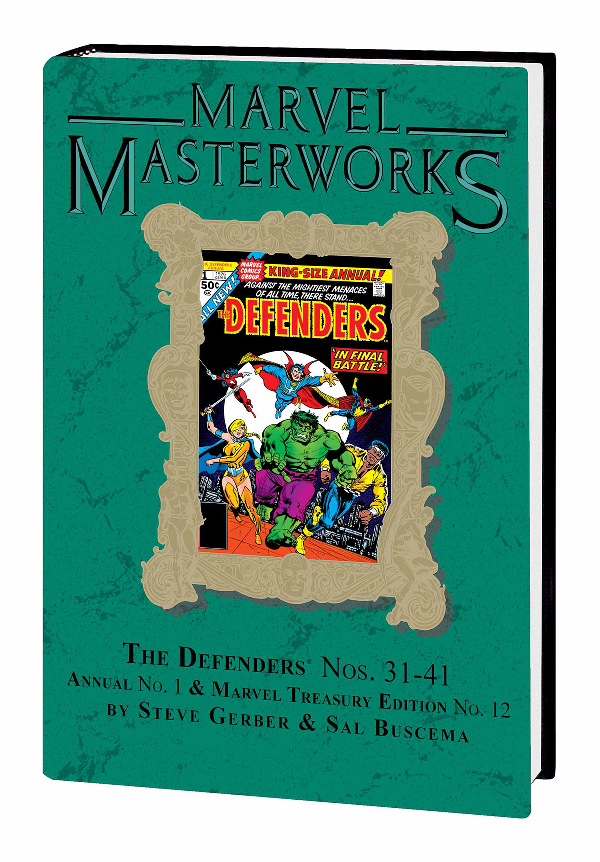 Steve Gerber's Defenders run comes to its revolutionary conclusion in the latest Marvel Masterworks extravaganza! Gerber consistently broke the boundaries of what a super-hero comic could be, and his Headmen saga stands as one of the high points in a celebrated career. From the Elf With a Gun to Bambi and the Bozos, Gerber wove together an unlikely cast with a challenging critique of the era's culture. His stories would influence a generation of new writers - and with artwork by the stellar team of Sal Buscema and Klaus Janson, Defenders is an indisputable '70s Marvel masterpiece. And we've topped it off with the classic Defenders/Howard the Duck MARVEL TREASURY EDITION team-up. Need we say more? Reserve your copy today! Collecting DEFENDERS (1972) #31-41 and ANNUAL #1, and MARVEL TREASURY EDITION #12.