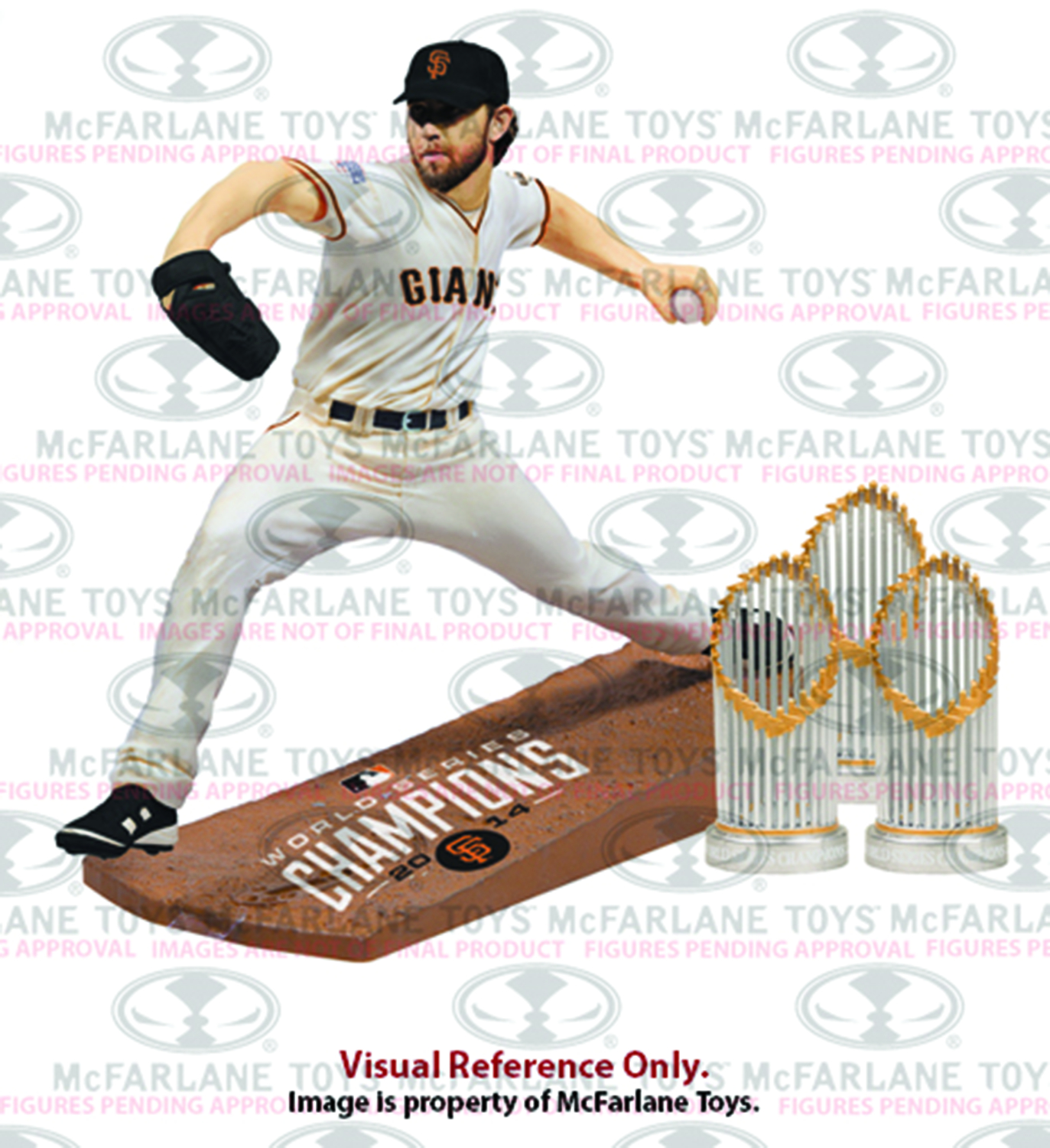 Sports Illustrated as the 2014 Sportsman of the Year and was the Associated Press' 2014 Male Athlete of the Year. This figure showcases him wearing his home uniform from the 2014 World Series (Game Five) and includes the official 2014 San Francisco Giants Champions logo on the base and three World Series trophies! Each figure will be individually numbered, with only 6,000 total pieces made and packaged in the "Collector Box" style packaging.