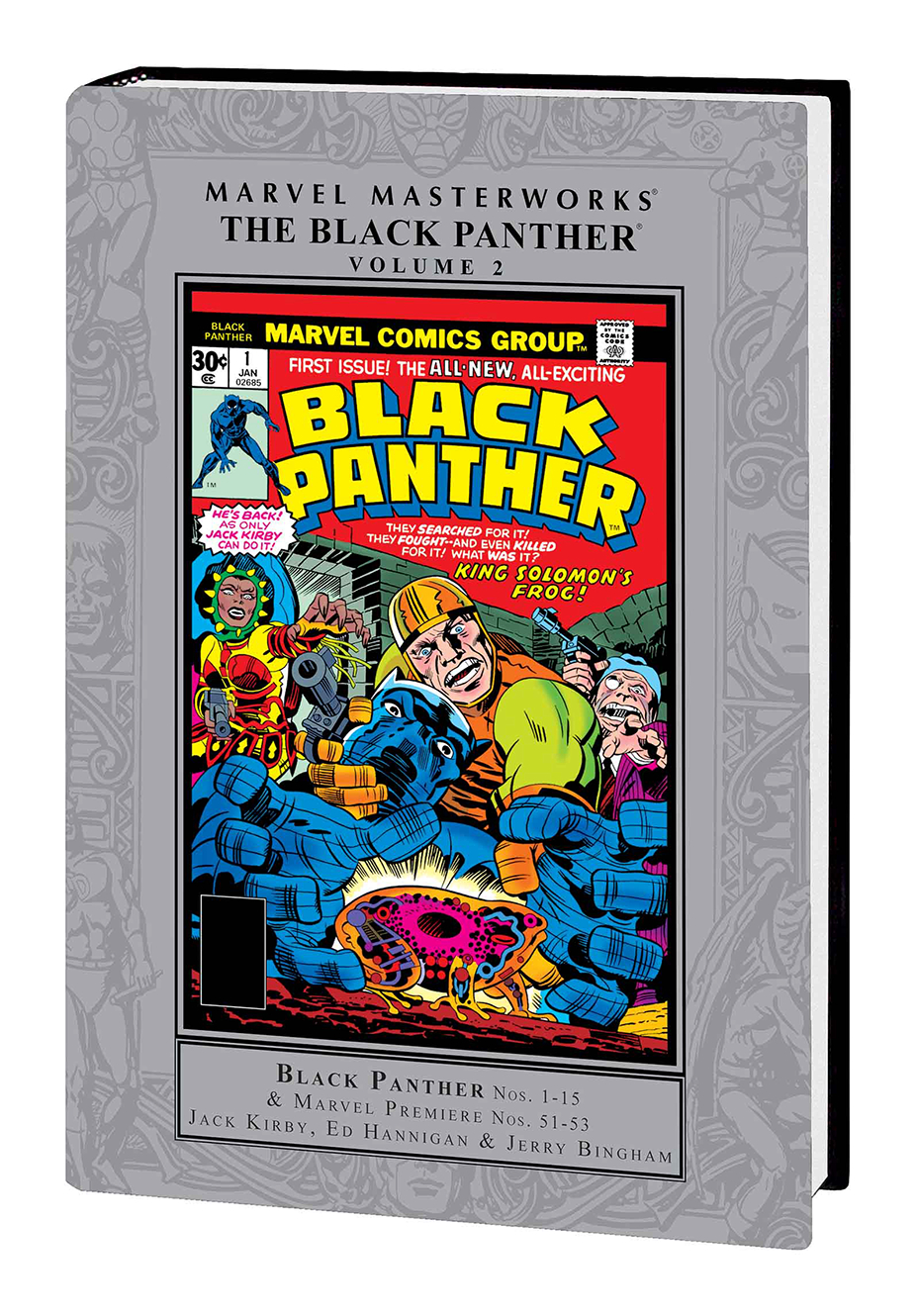 Jack "King" Kirby returns to the character with whom he made history as the Marvel Masterworks presents Kirby's complete Black Panther series and its never-before-reprinted conclusion in one massive volume! Kirby's limitless imagination unfurls before you as T'Challa unlocks the secret of King Solomon's frog, encounters alien races, battles eternal samurai warriors and more! The history of the Wakandans, their majestic city and their amazing technology, and the origins of Vibranium, are all explored with a power and passion that only Kirby can offer. Then, Ed Hannigan and Jerry Bingham present an epic battle between the Black Panther, the Avengers and Panther's nemesis, Ulysses Klaw! And finally, T'Challa returns to the American South to root out the evil Soul Strangler's cult! Collecting BLACK PANTHER (1977) #1-15, MARVEL PREMIERE #51-53 and material from MARVEL TEAM-UP (1972) #100.