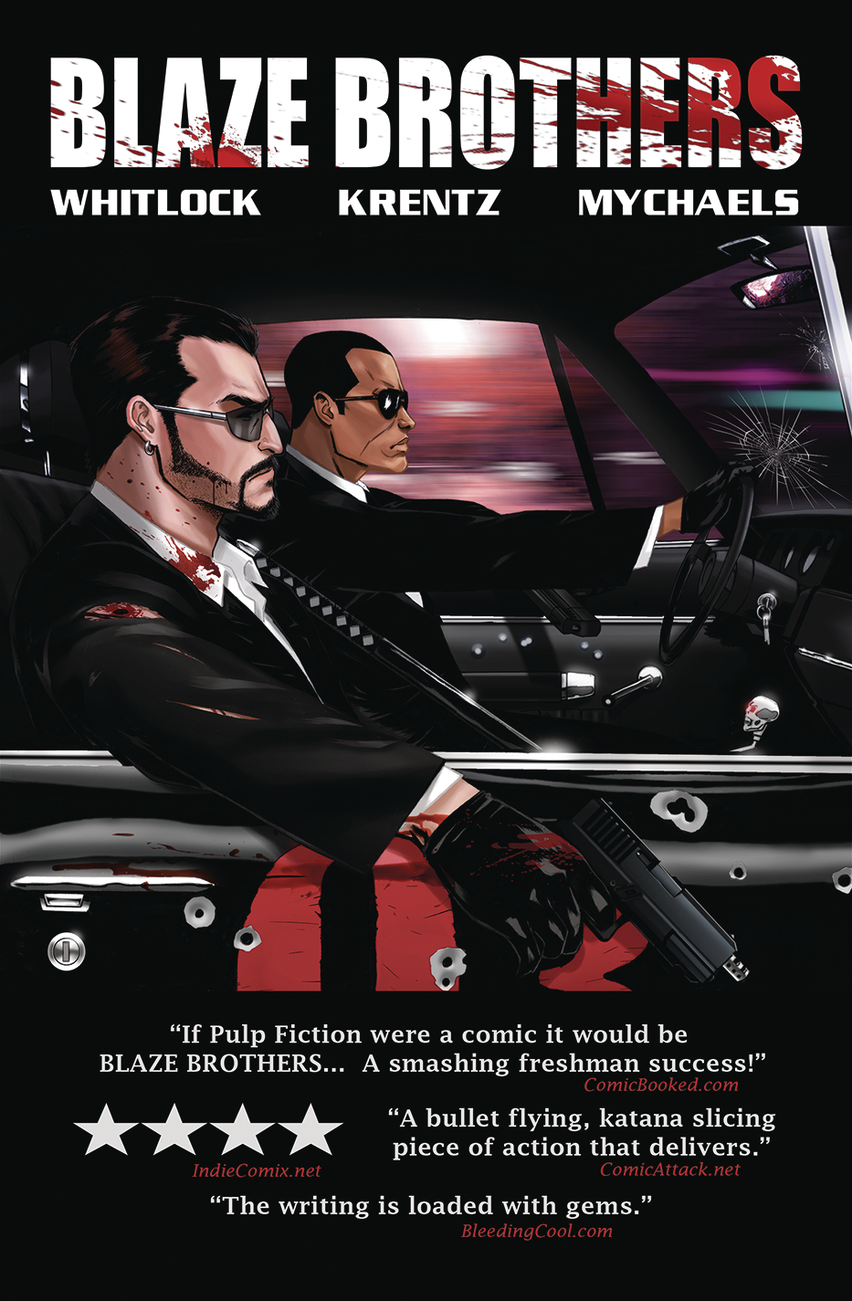 Blaze Brothers story for the first time! Two orphaned half brothers, Jack and Billy Blaze, reared by an exiled Chinese martial arts Master and trained as deadly assassins by a secret US Black Ops force, resign their commission after a botched mission leaves them both near death. The two gun-toting, sword-wielding brothers resurface as high-level debt collectors, working exclusively for a vicious Japanese crime lord, Mr. Yamamoto. Believing that the Blaze Brothers have dishonored him, he places a two million dollar bounty on their heads. The Blaze Brothers must battle every hitman, assassin, and gang member in the city in an attempt to clear their names.