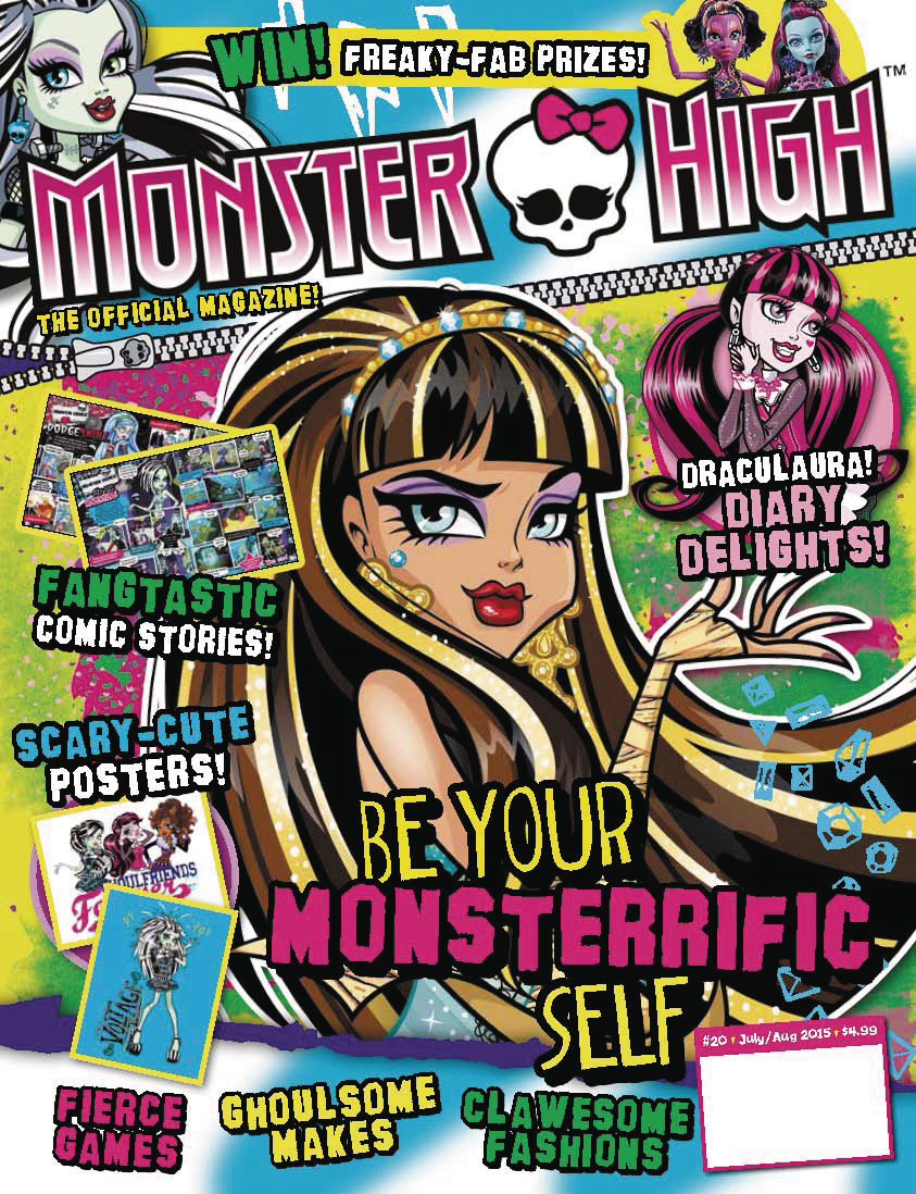 Cleo De NileM leads the pack to bring you haunts of monsterrific fun inside this scary-cute issue! Delve into Draculaura's diary pages to discover her juicy secrets, claw through the exfrighting comic stories featuring Clawdeen Wolf, and let the ghouls show you how to be your best ghoulsome self with your fashion picks! Plus, check out the freaky-fab posters, puzzles, quizzes and loads more!