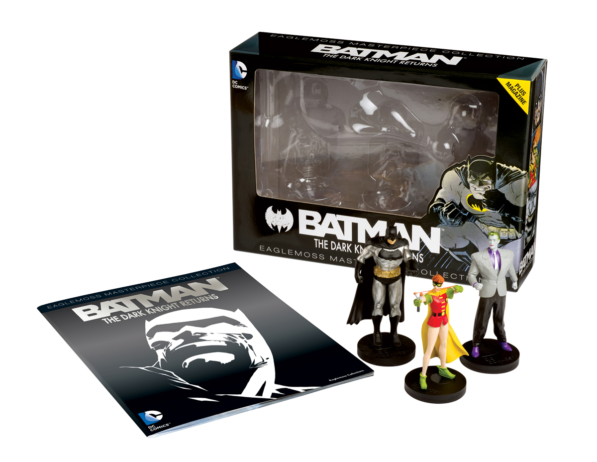 Celebrating Frank Miller's masterpiece story - The Dark Knight Returns, the latest figurine set in the Eaglemoss Masterpiece Collection features 1:14 scale polyresin figurines of Batman, the Joker and Carrie Kelly as Robin. The set comes with a 48-page booklet detailing the characters' history.