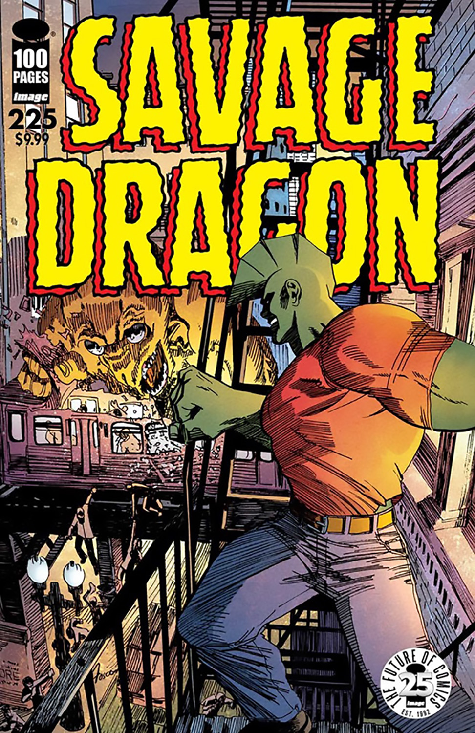 Giant-sized 25th anniversary special! Savage Dragon is restored to his former glory as he bulks up to take on Darklord in a final battle! Mr. Glum's devious plot to merge the multi-verse comes to its cataclysmic conclusion! Savage Dragon and Malcolm Dragon join forces to save Angel Murphy and the very earth itself!