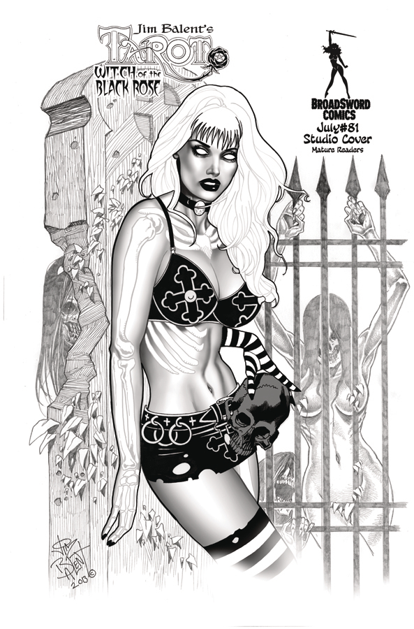 Tarot #81 features Jim Balent's Graveyard Gal, Crypt Chick. This collected set will be bagged and boarded with an art print of the same illustration in a ghoulishly glamorous sky-clad version. To see art print visit jimbalent.com.