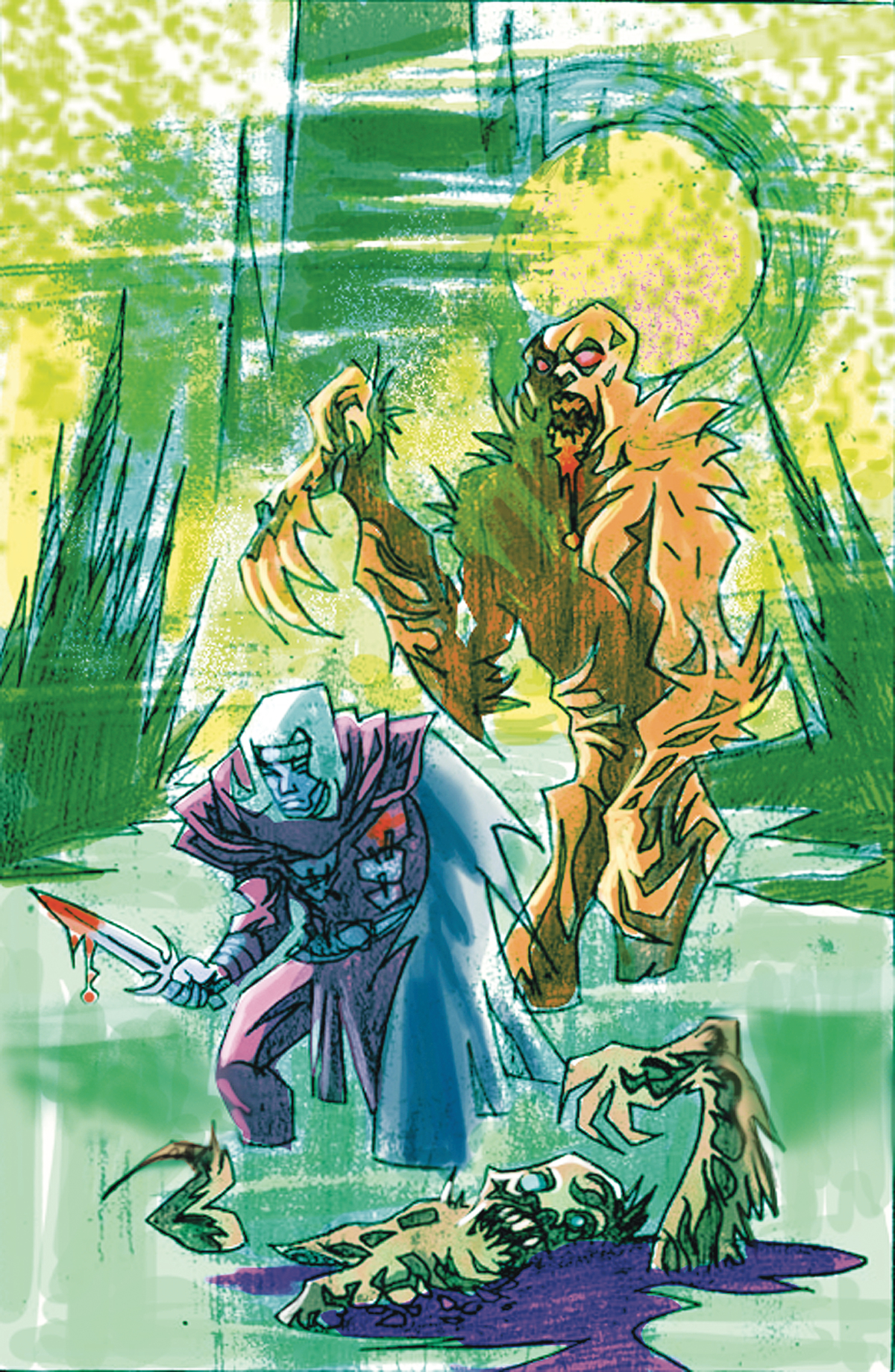 The Black Flame's origin is revealed in "Suffer the Little Children!" Young Heinrich eludes the Grabbing Things only to be captured by two boogeymen named Clawhammer and Noumenon who teach him the meaning of Fear.