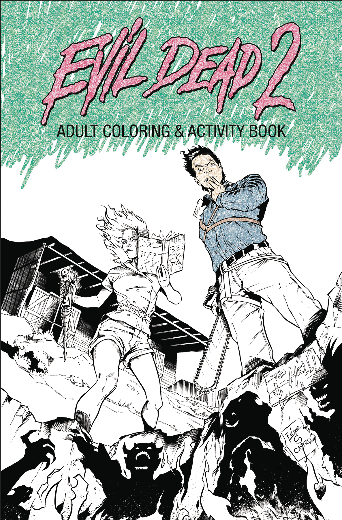 he Evil Dead 2 Adult Coloring & Activity Book features groovy and brutal goodness all in clean black and white lineart on quality coloring book paper for easy coloring.
