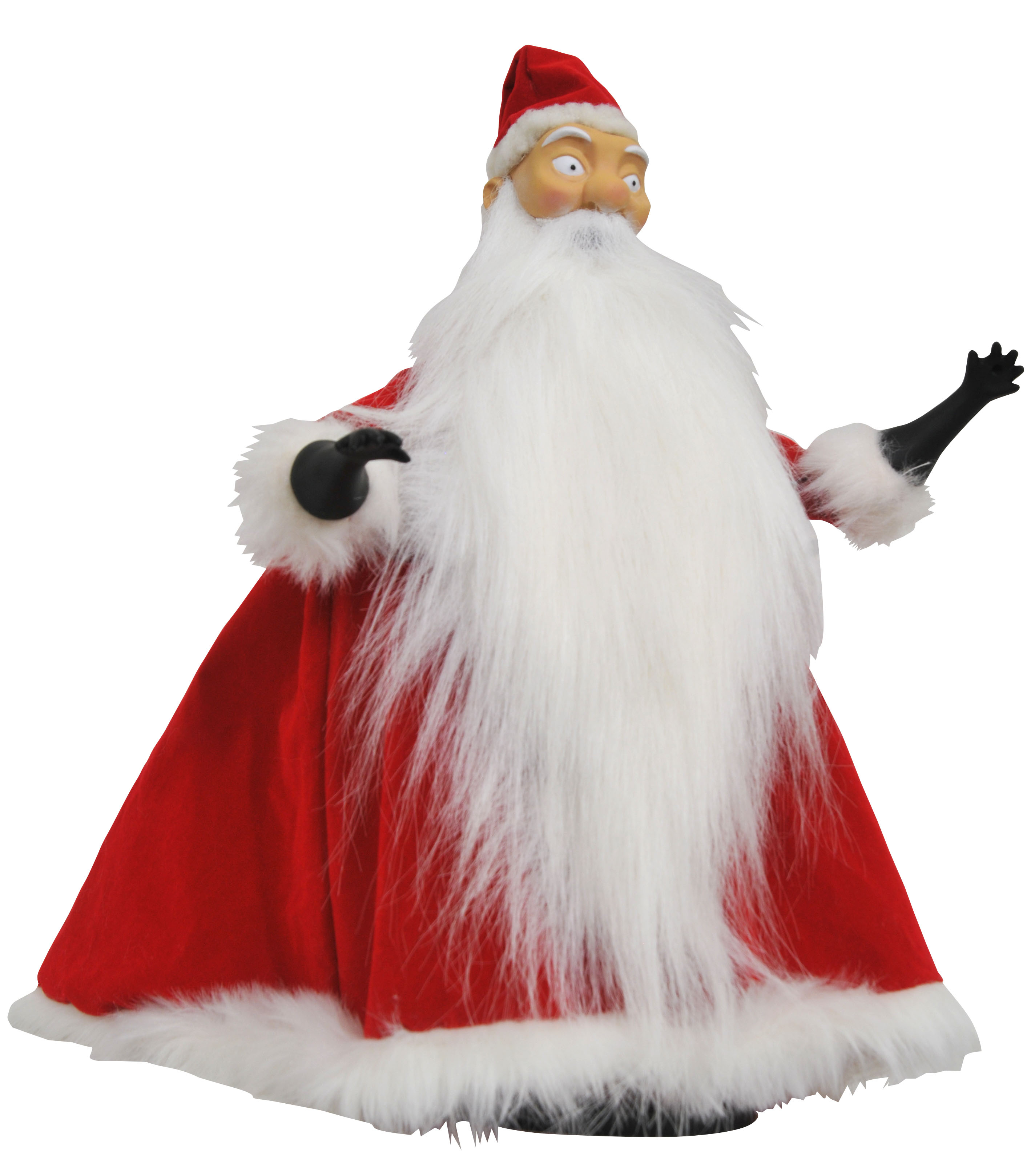 A Diamond Select Toys Release! The deluxe cloth Nightmare Before Christmas doll line continues with two new characters! These large-scale dolls of Zero the Ghost Dog and Santa Claus are in scale to the previously released Jack, Sally, Finkelstein and the Mayor, and look like they came straight from the movie! Santa Claus measures approximately 10" tall and features a real cloth costume, while the fully sculpted Zero hovers over a doghouse diorama atop a clear support stand. Each comes packaged in a full-color window box.