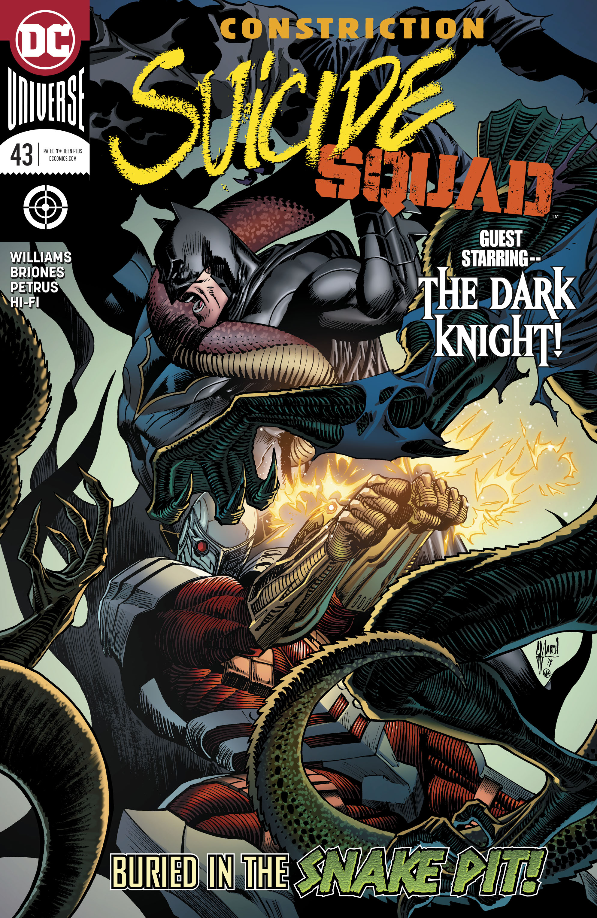 "CONSTRICTION" part three! Trained to kill by Kobra, Deadshot's daughter Zoe may be even more deadly than her father. Batman and Deadshot must face her down and stop her before she kills both them and all of Kobra!