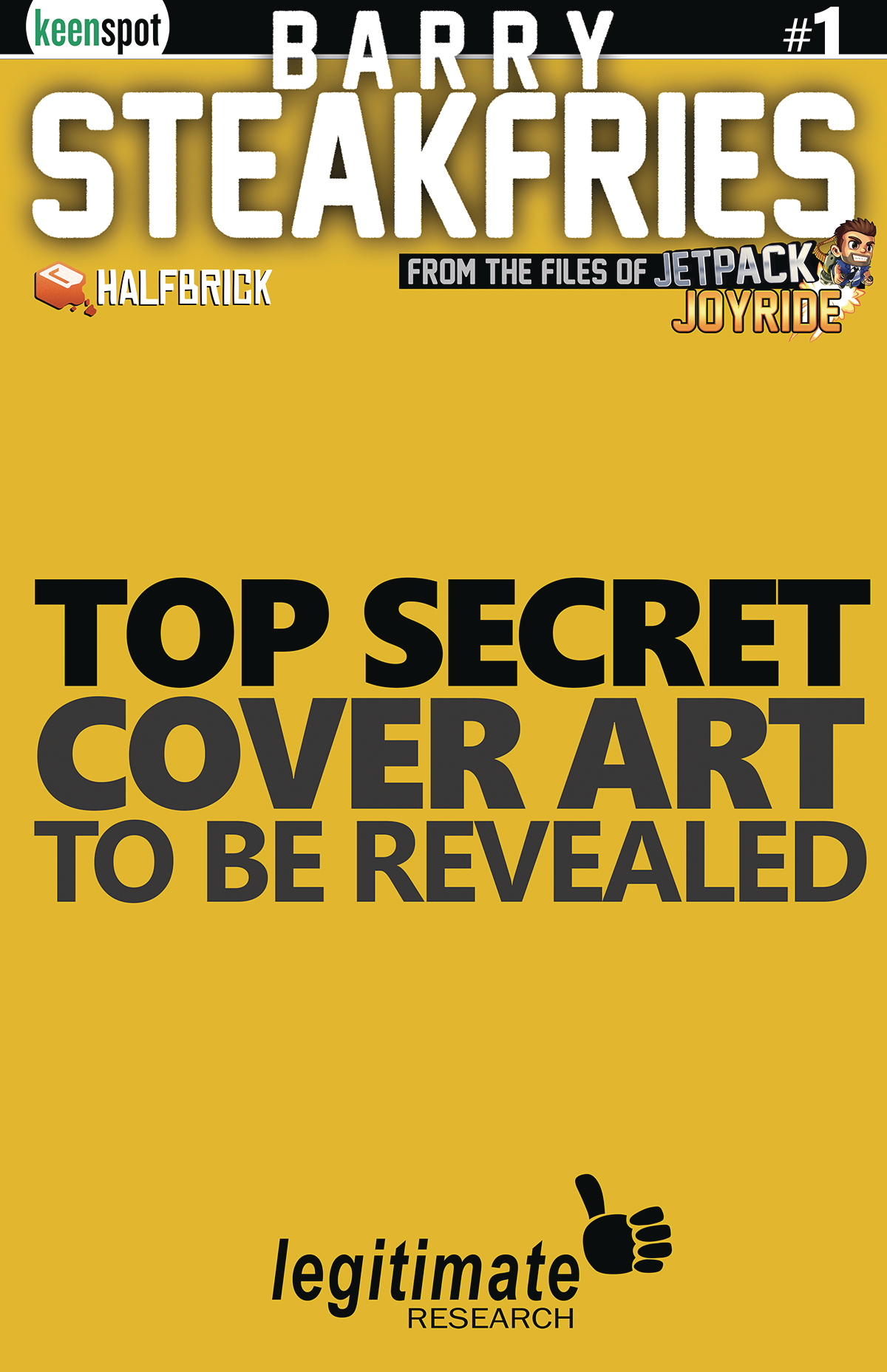 Who is Barry Steakfries? Struggling gramophone salesman by day, jetpack-stealing sleeveless adventurer also by day! He's got a shirt-ripping disease and there is no cure! He's part Bruce Campbell, part Marty McFly, all action! With the help of his friends (a robot dog that's way smarter than him and a robot bird that shoots money), Barry tortures the evil scientists of Legitimate Research by stealing jetpacks faster than they can manufacture them. An all-new comic book based on the massively popular retro video game Jetpack Joyride!