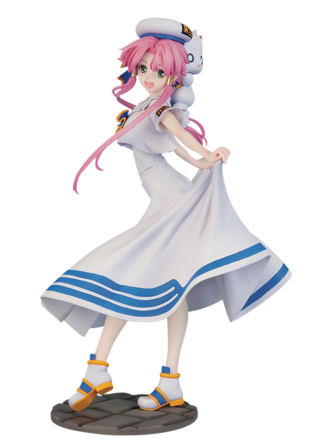 ARIA is immortalised as a beautiful figure, based on her appearance on the cover of one of the manga volumes! The President of the Aria Company is perched on her shoulder as she twirls around, holding her skirt out as if to keep the hem from getting wet, with her pink hair swirling around her and a bright smile on her face. She can be displayed with or without her hat, too. She was sculpted by French Doll of Cerberus Project, and she's about 9 7/8" tall.