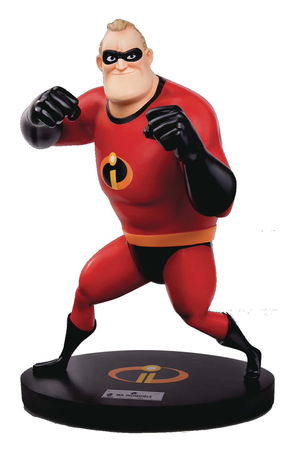 From Beast Kingdom. A PREVIEWS Exclusive! The Master Craft series presented by Beast Kingdom brings you Mr. Incredible, the once famous superhero who enjoys leading a secluded life featured in the 2004 superhero animated film produced by Pixar: The Incredibles. With their masterful skills, the clay artists of Beast Kingdom carved out the soul of the animated character. Utilizing exquisite hand painting techniques, they reproduced with utmost perfection the former superhero who is now a "house husband." From his fiery eyes and combat ready stance, we can catch a glimpse of how his enthusiasm for cracking down crimes and proving himself has not diminished in the slightest. Even though he is no longer handsome and his glory no longer exists, even if all he has left is a plump body with a bulging waistline and very few muscles and a slick iconic hairstyle that has visibly thinned, nothing can extinguish his heroic spirit for safeguarding world justice and peace. Fancy this spirited middle-aged superhero? Enrich your treasured collections and enhance your home ambiance with the Master Craft series presented by Beast Kingdom. This 1/4 Scale statue stands 17" tall with a base that's 13" across.