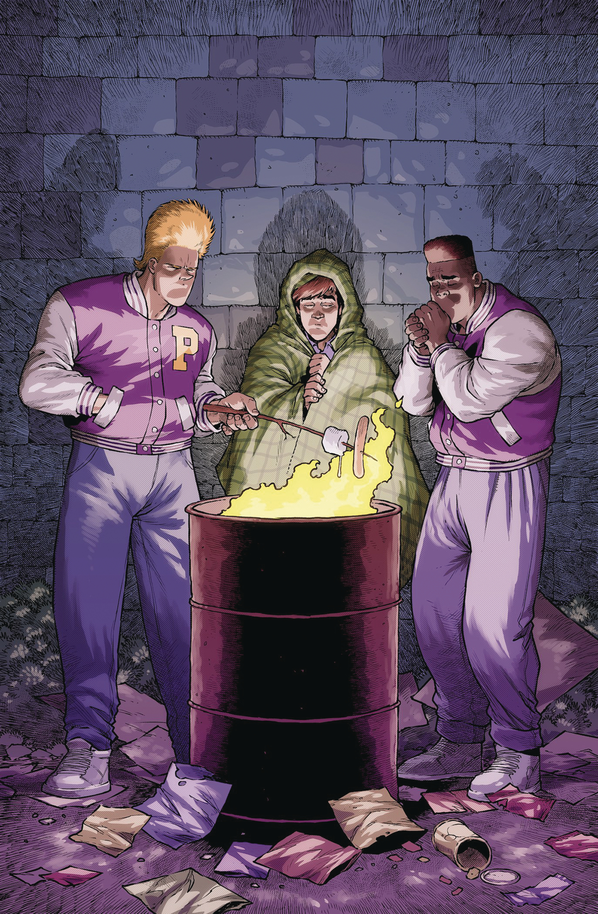 The angry, thawed-out jocks from the 80s search the world of 2019 for the nerd who froze them. But how do you find anyone when telephone books and pay phones are extinct? PLUS! Back in the 80s, bully Chad tries endlessly to placate his dad, who's an even bigger bully. EXTRAS! AHOY's usual prose stories and features, beautifully illustrated.