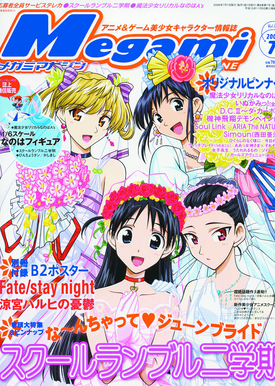 Megami is the best Japanese anime magazine for tons of free giveaways, as well as full-color artwork and posters! Includes telephone cards, punch-out "character stands", stickers, and much more! Japanese text.