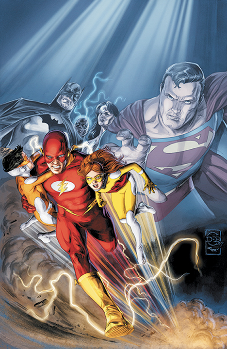 The Justice League steps up to take away the Flash's loved ones in the name of the law! Also in this issue: "The Fast Life" begins! This backup feature by Waid, Rogers (BLUE BEETLE) and Doug Braithwaite (JUSTICE) picks up from INFINITE CRISIS and reveals the secrets behind the West Family's otherworldly exile!