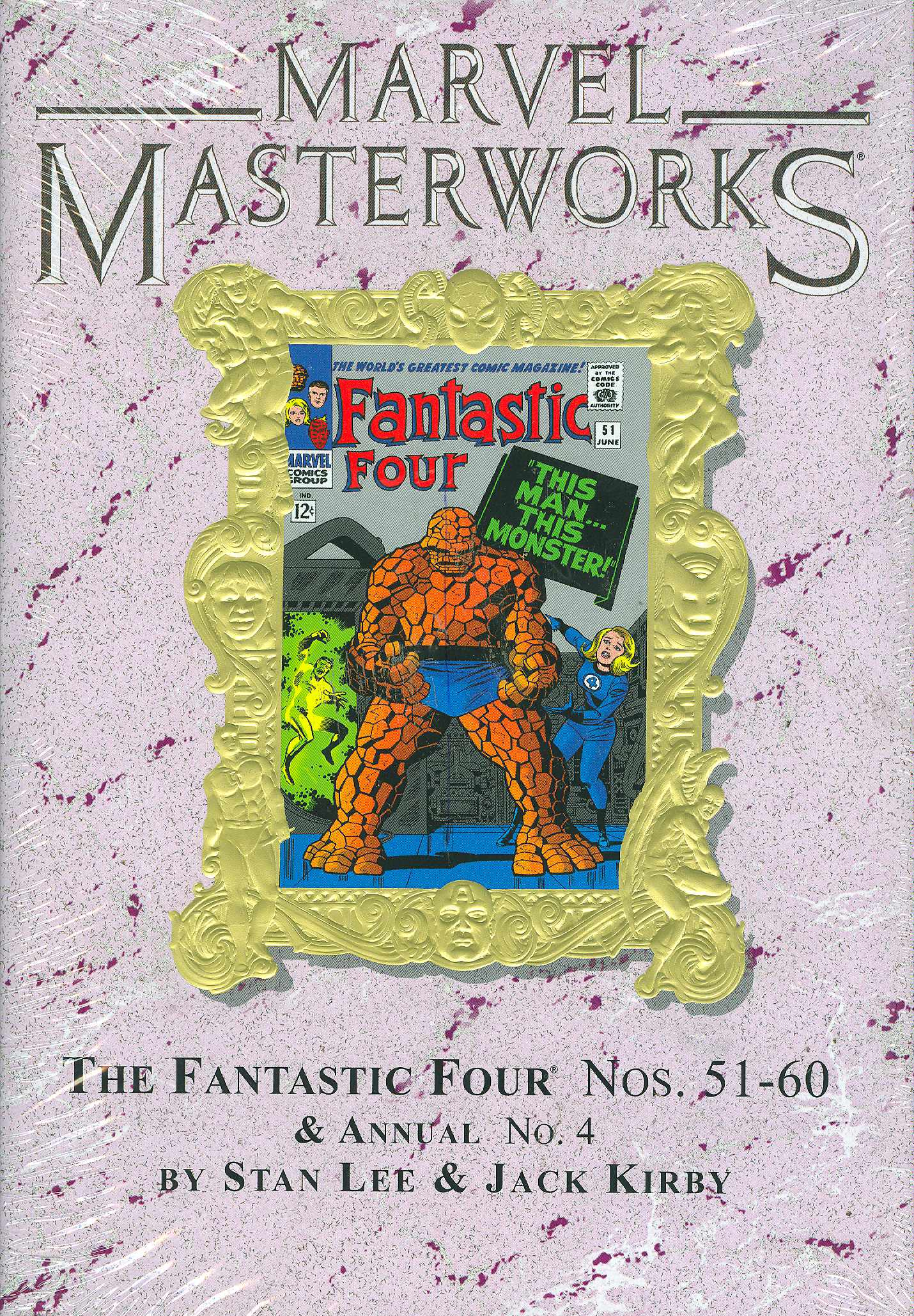 Continuing their greatest hits streak on the The World's Greatest Comic Magazine!, Stan Lee and Jack Kirby weren't content just to create the Inhumans, Galactus, and the Silver Surfer. No, a three-peat was thinking far, far smaller than the most amazing team in comics' history imagined. Their follow-up was a heart-wrenching tale of tragedy and heroism titled "This Man! This Monster!" If this story doesn't make you come to love Benjamin J. Grimm, then yer heart must be made of orange rock, fella! Because the greatest FANTASTIC FOUR story wasn't enough, waiting in the wings Stan and Jack had yet another unmatched milestone: the first-appearance of the world's first African super hero, the Black Panther and his kingdom of Wakanda! And that's just the start! In the pages of this Marvel Masterworks you'll also encounter the vile Klaw, see the Silver Surfer go toe-to-toe with the Thing, watch the Human Torch face his namesake, the original 1940s Torch, and wonder in shock and awe at how the Fantastic Four can hope to overcome Dr. Doom when he's wrested the Power Cosmic from the all-powerful Silver Surfer himself! We can't guarantee that you won't wear out the pages reading stories these great again and again! You may want to order two just in case! Collecting FANTASTIC FOUR #51-60 and ANNUAL #4