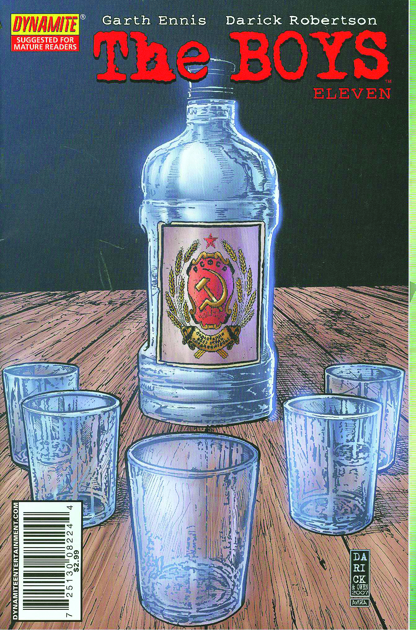 The most talked about comic of the year continues from Dynamite Entertainment, writer/co-creator Garth Ennis and artist/co-creator Darick Robertson! The Boys travel to Moscow, where the local supes are falling foul of a mysterious and violent enemy. An old ally awaits our heroes in the former Soviet Union - and with the brutal Russian mafia involved, they'll need all the help they can get, in Part One of the four-part "Glorious Five Year Plan!"