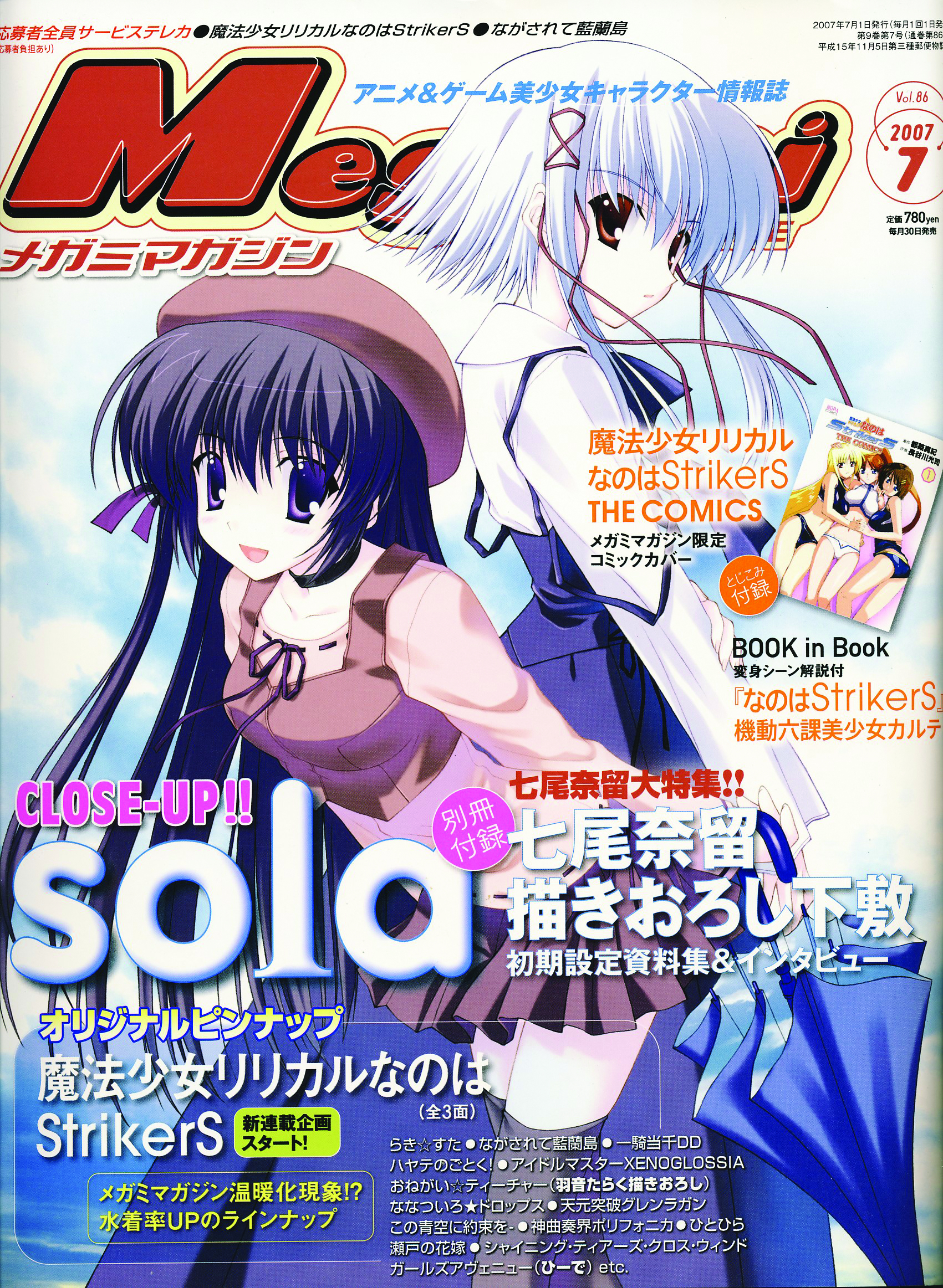 Megami is the best Japanese anime magazine for tons of free giveaways, as well as full-color artwork and posters! Includes telephone cards, punch-out "character stands," stickers, and much more! Japanese text.
