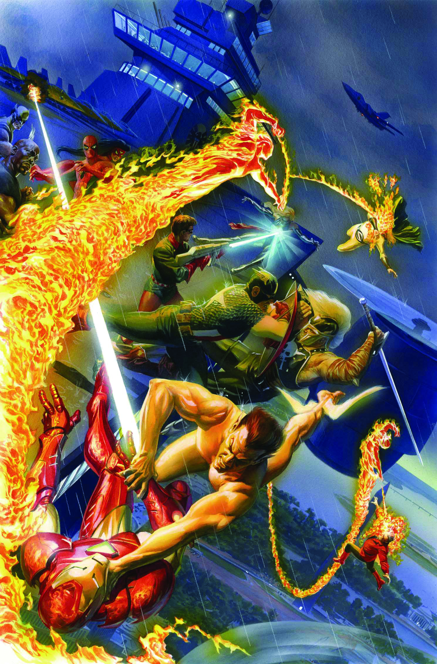 The second act of the hit maxi-series begins as our three teams -- the Avengers vs. the Avengers vs the Invaders - face off in an all-out battle aboard the S.H.I.E.L.D. Helicarrier! While battle rages, Dr. Strange attempts to solve the mystery of what ripped the greatest Heroes Of World War II to the present day, and how to put them back. Will the combined might of three super-teams be enough to stop the cross-time devastation? Match all of this with the return of one of the Avengers deadliest villains -- one with a particular interest in the Original Human Torch -- and you know, from what you've seen so far, the return of Captain America is only the tip of the iceberg!