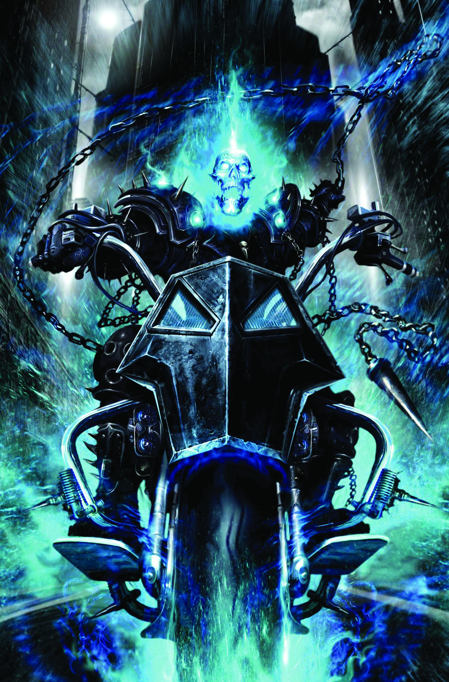 You've heard the news by now. He's been away, he's been down to rock bottom; but he's back. Dan Ketch reborn: a stranger, darker figure. So what happened, Dannyboy? Where did it all go wrong? Tying-into Jason Aaron's stunning take on the Ghost Rider mythos, artist Javier Saltares (Iron Man, Cat Woman) and writer Simon Spurrier (Gutsville, Silver Surfer) present a tormented fall into the deepest pits of the soul. Join us - via Technomancer babes, talking carrion-birds, battering-rams on bikes and the inescapable hunger for Vengeance - for a dark tale of Addiction...