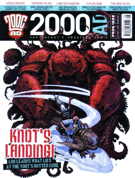 Britain's award-winning, influential SF anthology title, 2000 AD, provides high-octane action and excitement every week! Jack Dancer's crew faces the wrath of ancient deities in "The Red Seas: Old Gods," by Ian Edginton and Steve Yeowell; war-robots the A.B.C. Warriors are on a desperate rescue mission in "The Volgan War," by Pat Mills and Clint Langley; the prisoners attempt to break free of their captors in "Stalag 666," by Tony Lee and Jon-Davis-Hunt; torturer-for-hire Lobster Random descends into the murky world of his past in "The Forget-Me Knot," by Simon Spurrier and Carl Critchlow; and a pair of perps get more than they bargained for in "Judge Dredd: The Ecstasy," by John Wagner!
