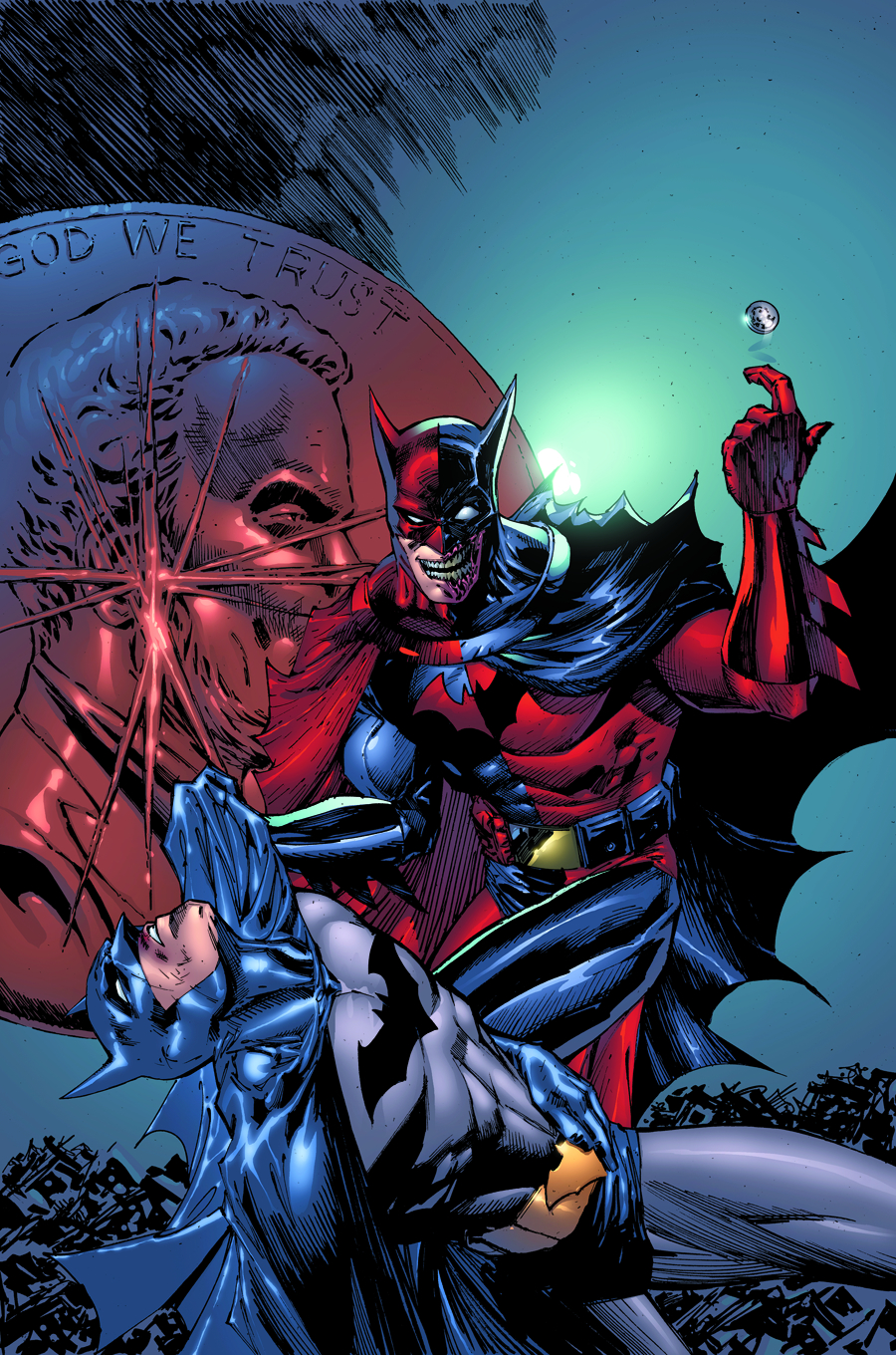 BATMAN double-ships this month as Two-Face and the new Batman throw down in the Batcave. And the fight is a vicious one, but just as Two-Face begins to get the upper hand...Batman shows up? The final chapter of Dick Grayson's first adventure as Batman is a can't-miss!