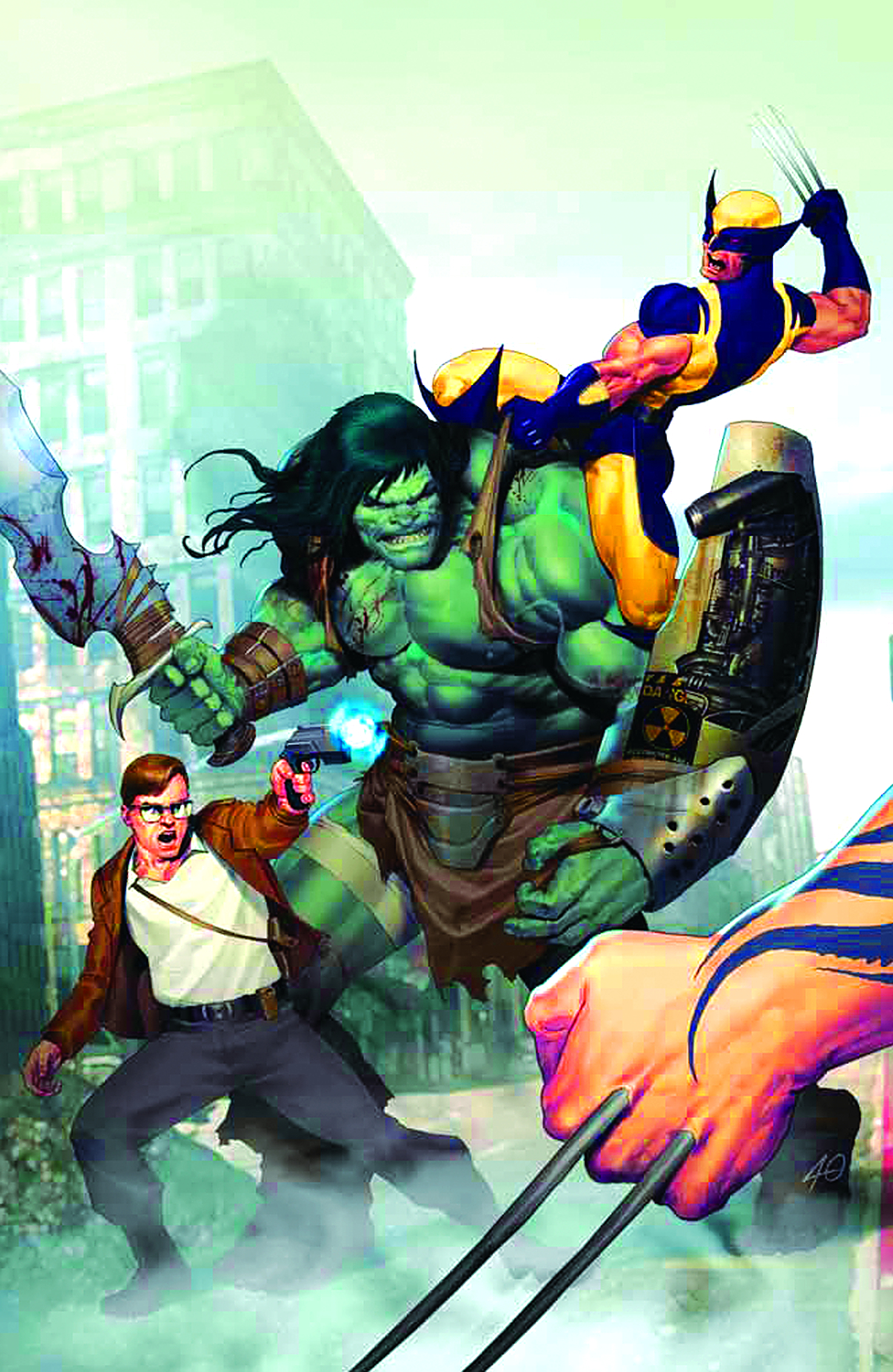 Smash meets slash as Banner and Skaar finally come fist-to-claw with Logan and Daken! But will the battle royale come down to Wolverines versus Hulks -- or fathers versus sons? Anything's possible as the Marvel Universe's most insane father/son duos throw down! Plus, in the SAVAGE SHE-HULK backup by Fred Van Lente and Michael Ryan, Lyra continues the search for Jennifer Walters!