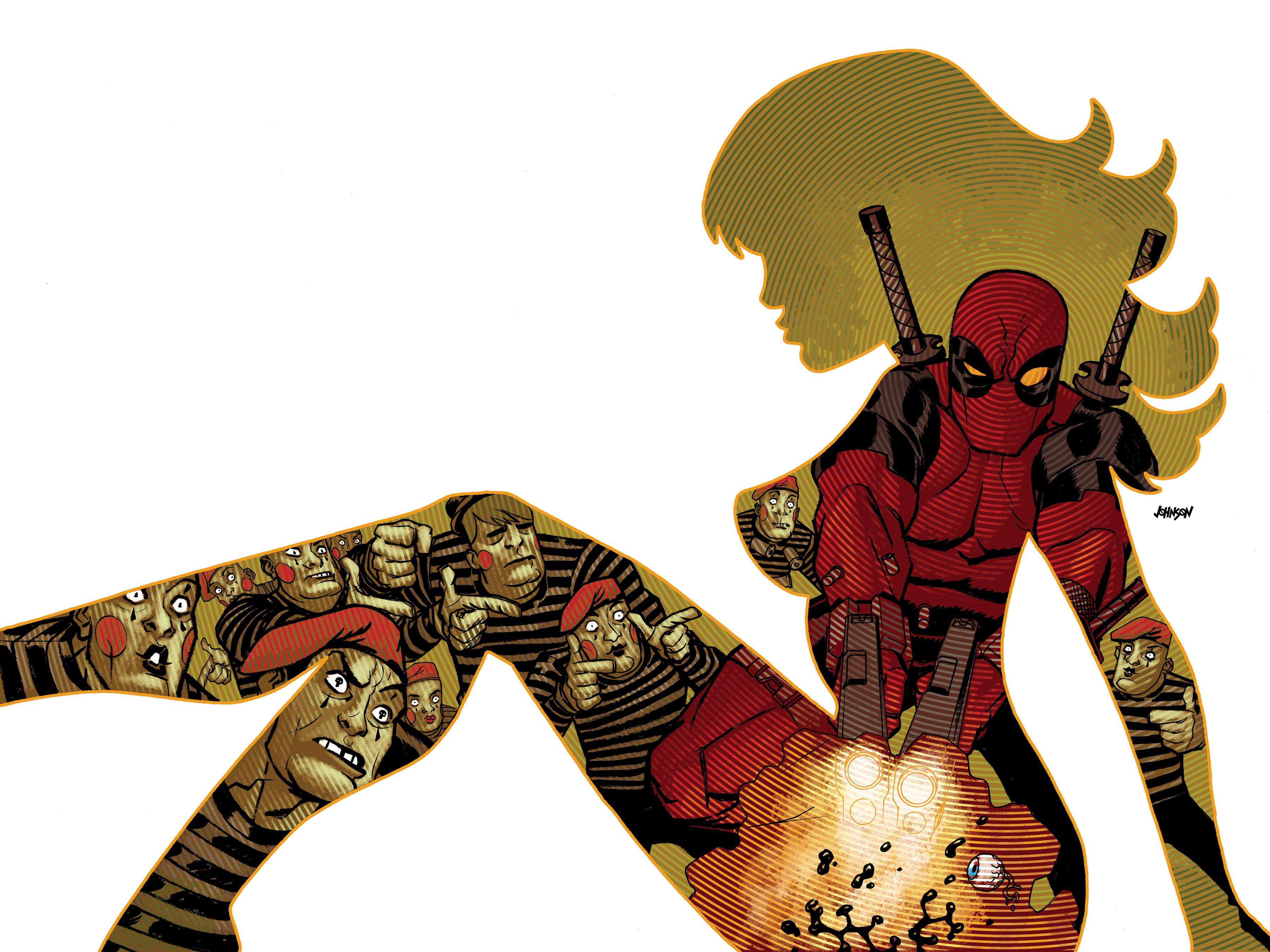Special SUPER-sized, ACTION-packed 104-page special to commemorate Deadpool's historic 900th issue! ... Wait, has it really been nine-hundred issues...? Who cares! If this collection of octane-infused stories by some of comics' hottest talent doesn't make you want to genuflect at the Altar of Wade, nothing will. Thrill as the Merc with a Mouth squares off against probe-happy aliens, trigger-happy mimes and one seriously unhappy fanman - and that's just half the book! Wince as Wade bares his soul (and lots more) to a shrink who's got major squirrels in his own attic. Thrill as he travels around the globe and then some to settle a childhood bet. And chill as C.S.I. investigators at a blood-splattered crime scene attempt to piece together why this particular "unsub" needed battery cables, Crisco oil, three stacks of adult magazines and a live chicken to pull off the hit.
