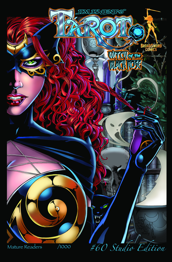 Tarot #60 which features Tarot in her Spellroom. Each cover has a litho-like number placed directly on the cover and is signed by Jim Balent. Along with the comic, look for a bonus spellcard that sports Jim Balent's bewitching art and a spell by Holly G! A perfect Halloween treat! A numbered Certificate of Authenticity is also included.