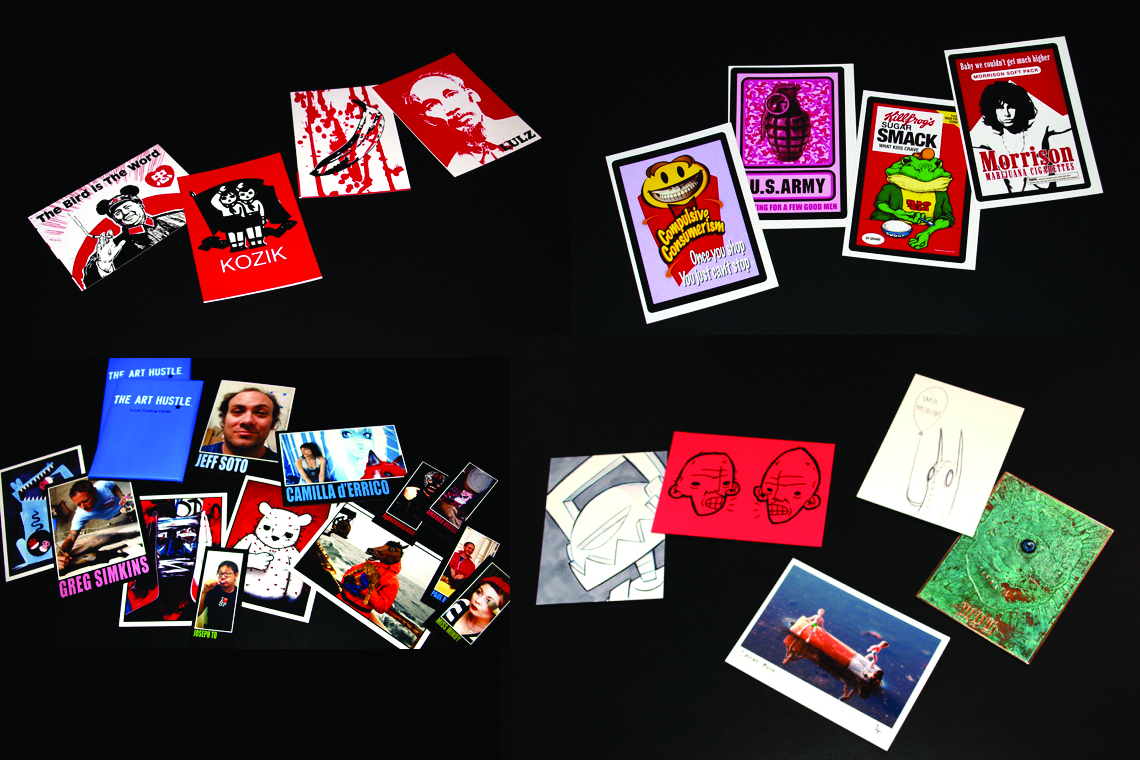 The Art Hustle Series 2! Artists in this new series include Jeff Soto, Charles Krafft, Greg Simkins, Joe Ledbetter, KRK Ryden, Amanda Visell, Slinkachu, Corey Arnold, Luke Chueh, Dave Kinsey, Mark Mothersbaugh, SKINNER, Brett Ratner, Camilla d'Errico, the legendary Al Jaffee, and 60 more art stars. A 162-card base set, signature cards, Frank Kozik Silkscreen cards, and Ron English Sticker cards await in each of the 500 numbered boxes! 36 packs per box.