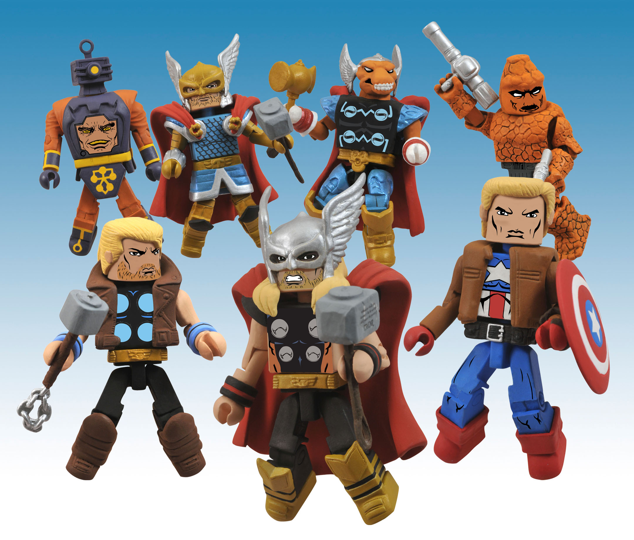 A Diamond Select Release! Art Asylum Designs & Sculpts! Diamond Select continues the longest-running collector line in toy history! Springboarding off of this summer's blockbuster Marvel movies, Series 42 expands the comic-based worlds of Thor and Captain America, celebrating some of the characters from both universes that have never before been done as Minimates! This series features Civil War Captain America and Arnim Zola, Armored Thor and Beta Ray Bill, an exclusive Stone Man with Thunderstrike, and a short-packed variant set with an army-building Stone Man and the Eric Masterson version of Thor. Each Minimate stands 2.5 inches tall with 14 points of articulation and a variety of removable and interchangeable parts and accessories.