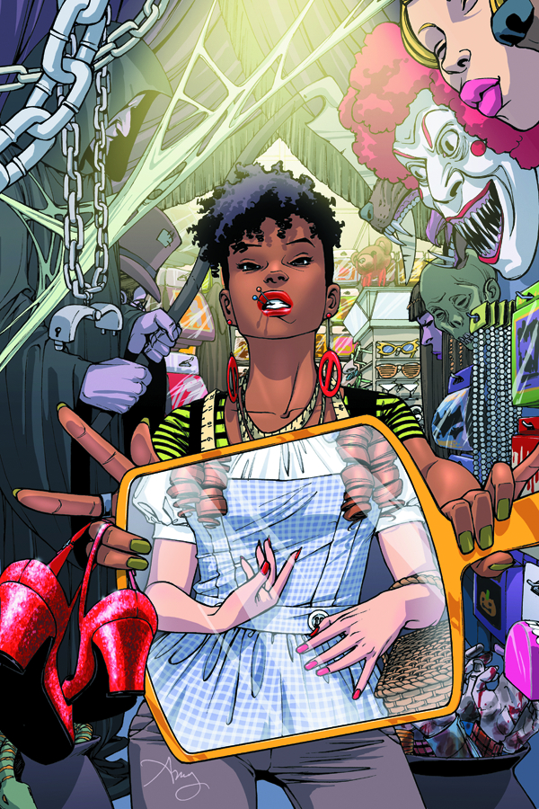 Eve has an imagination that's more than active - it can be downright dangerous! Working late at the costume super-store Halloween Land, she gets lost in her own thoughts until something goes bump in the night. The rubber masks and plastic novelties are coming to life, and Eve must face ghosts, goblins, and gorilla suits made real. High fantasy and heartbreak in an oversized holiday one-shot by BRANDON MONTCLARE (Fear Itself: Fearsome Four) and Eisner Award nominee Amy Reeder (Batwoman, Madame Xanadu).