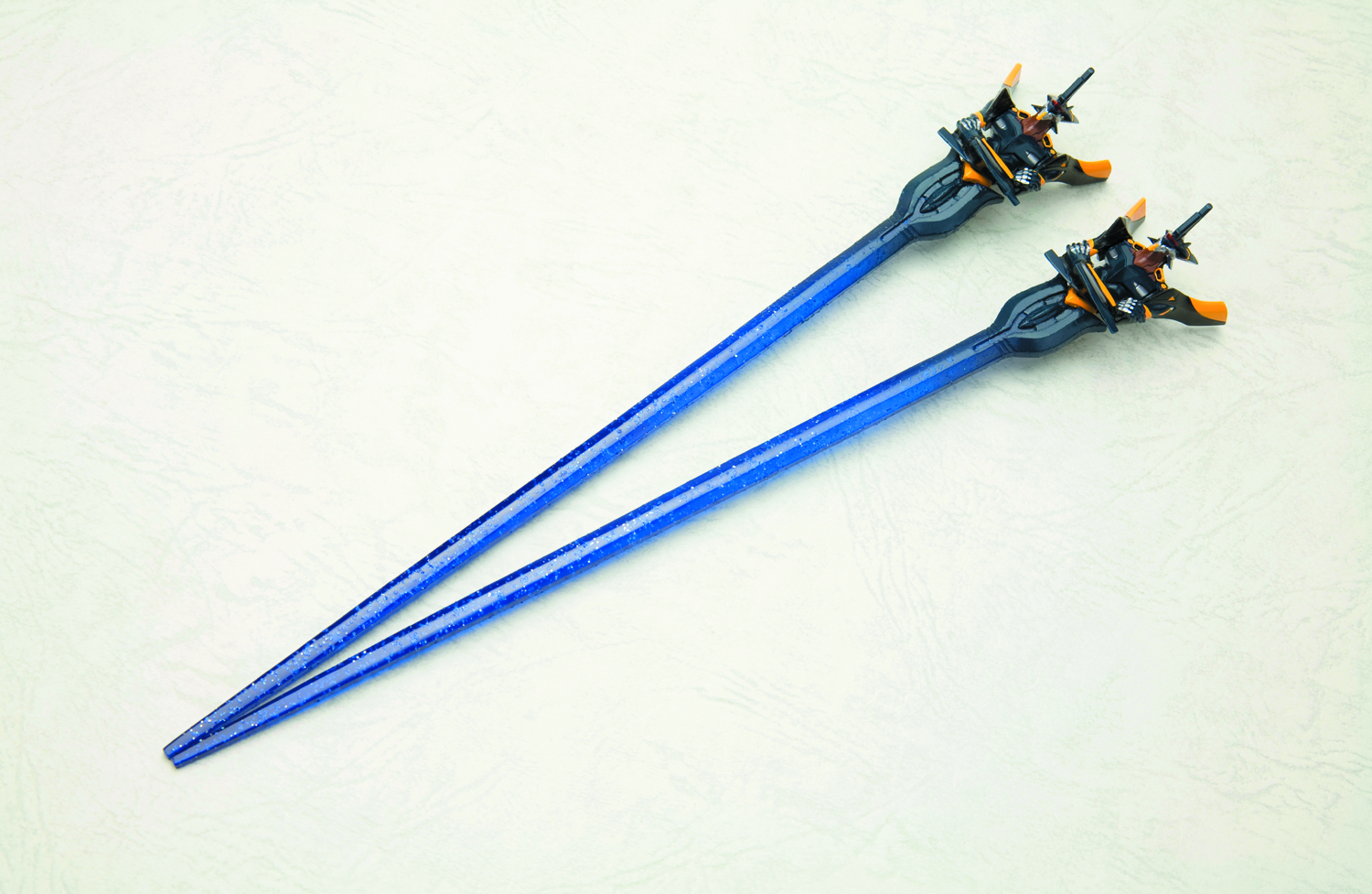 A KOTOBUKIYA Japanese import! After producing innovative chopsticks based on Star Wars lightsabers, historical samurai swords, animals, dinosaurs, and even Aliens Kotobukiya is proud to return to one of the most popular anime series of all with two new kitchen items based on the movie EVANGELION You Can (Not) Advance! Now you can enjoy anime at your table with the main robot unit piloted by Shinji Ikari, EVANGELION TEST TYPE-01, and "true Evangelion," the EVANGELION MARK 6! Unique, fun, and innovative, these glittering utensils (violet and green Eva-01 and blue, gray, and yellow Mark 6) are semi-translucent and make for a striking addition to any dining experience. Each set of chopsticks measures 9 inches long with the eating utensil extending from the Eva's torso. Use them with other Evangelion kitchen items like the entry plug chopsticks and silicone trays for a complete Evangelion-themed event!