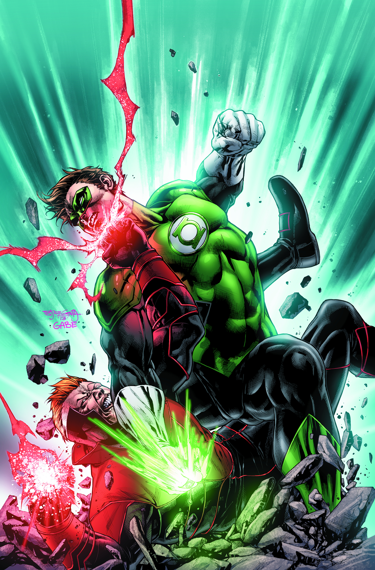 "LIGHTS OUT" part four! Can the Lanterns cooperate with each other long enough to defeat Relic? If Hal Jordan thought Guy Gardner was difficult before, just wait till he meets Guy Gardner-RED LANTERN!