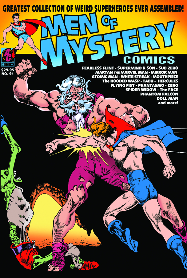This "Weird Heroes" issue is full of rare 1940's costumed heroes, most never before reprinted! See FEarless Flint, Sub-Zero, Supermind and Son, Mirror Man, Martan, Atomic Man, White Streak, Flying Fist, Ghost of Flanders, Mouthpiece, Hooded Wasp, Ghost, Phantasmo, Tabu, Lightning, The Face, Phantom Falcon , plus stars Doll Man And Hercules.
