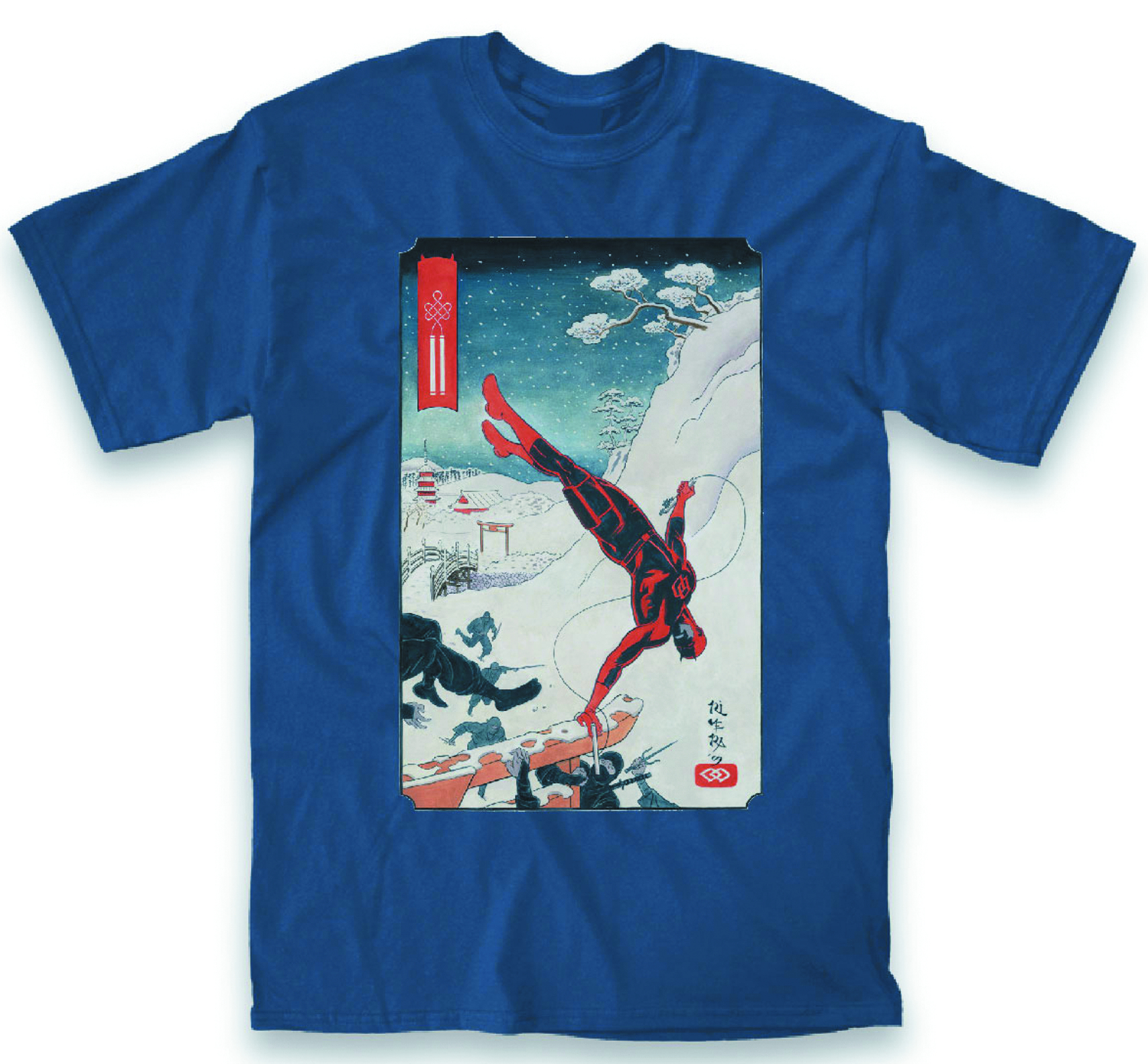 Daredevil springs through the air on this navy t-shirt!